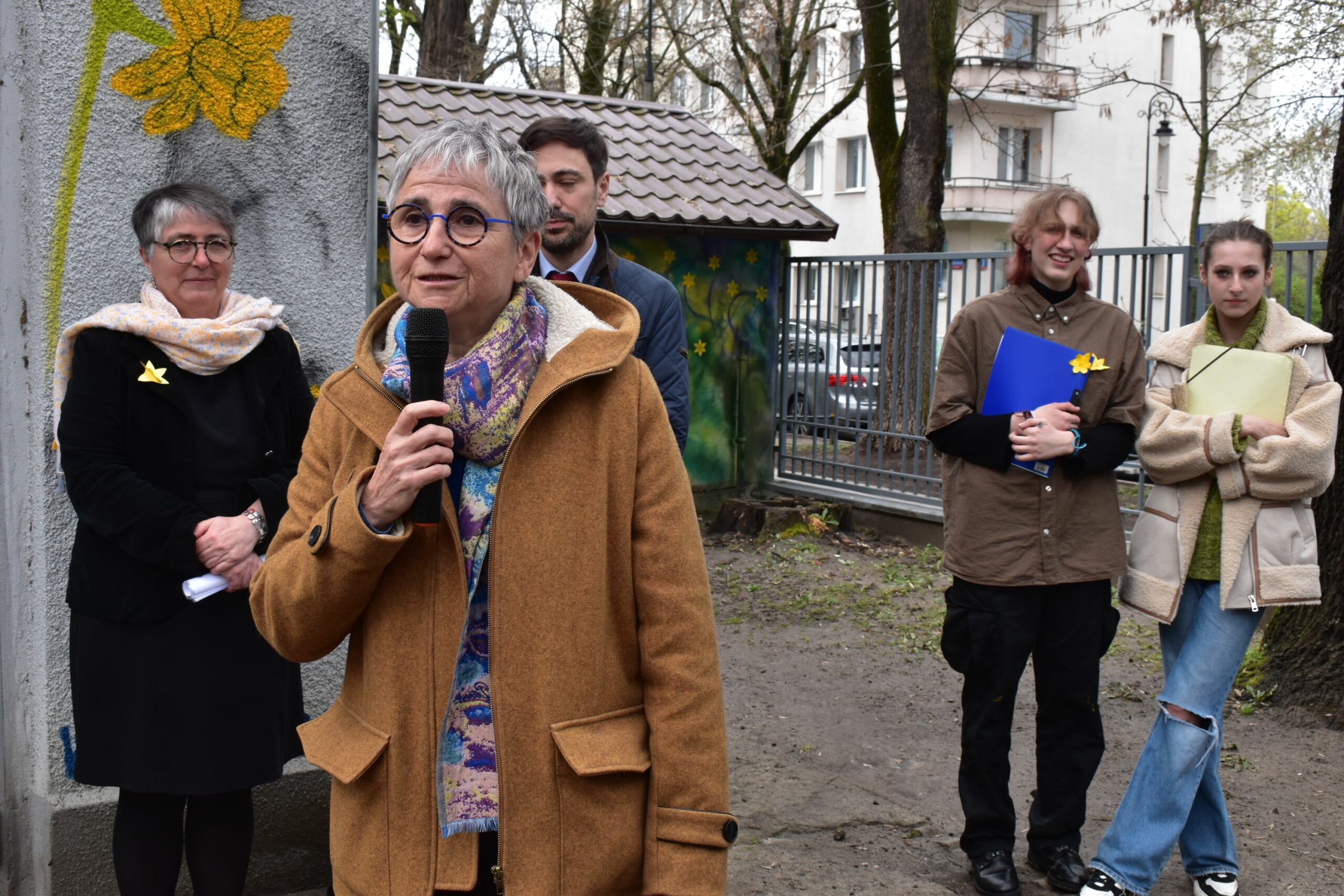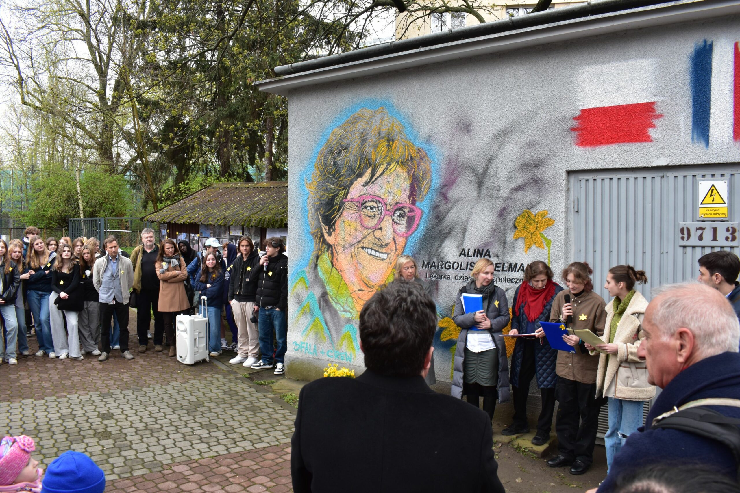 On Wednesday, April 19th, the mural was unveiled during a ceremony attended by a few close relatives of Alina Margolis-Edelman. The event also brought together several representatives from the French Embassy in Poland, the Mayor of the Praga-Południe district, the POLIN Museum, the “Dajemy Dzieciom Siłę” Foundation, as well as the director of the School No. 292 and the LFV community.