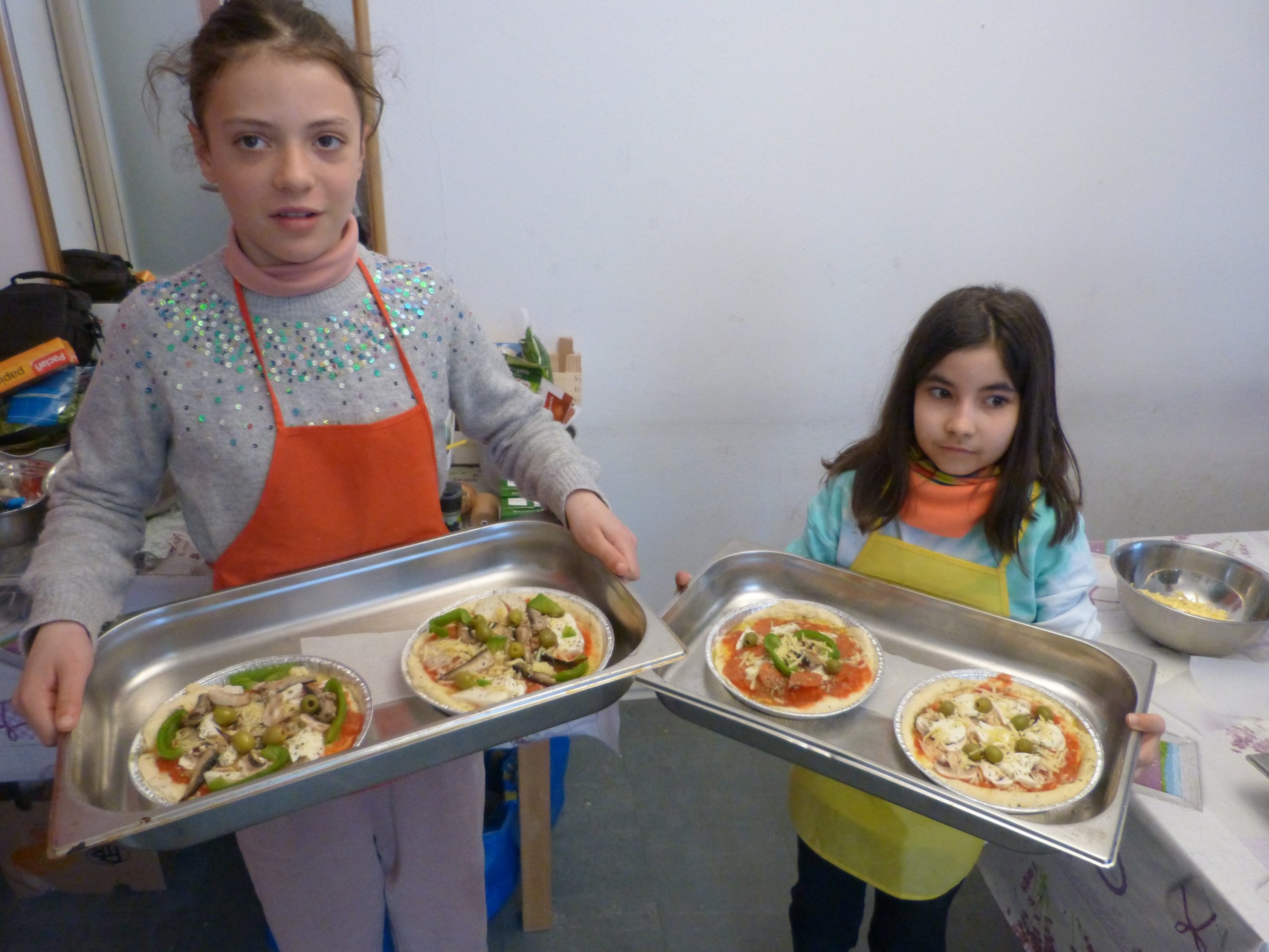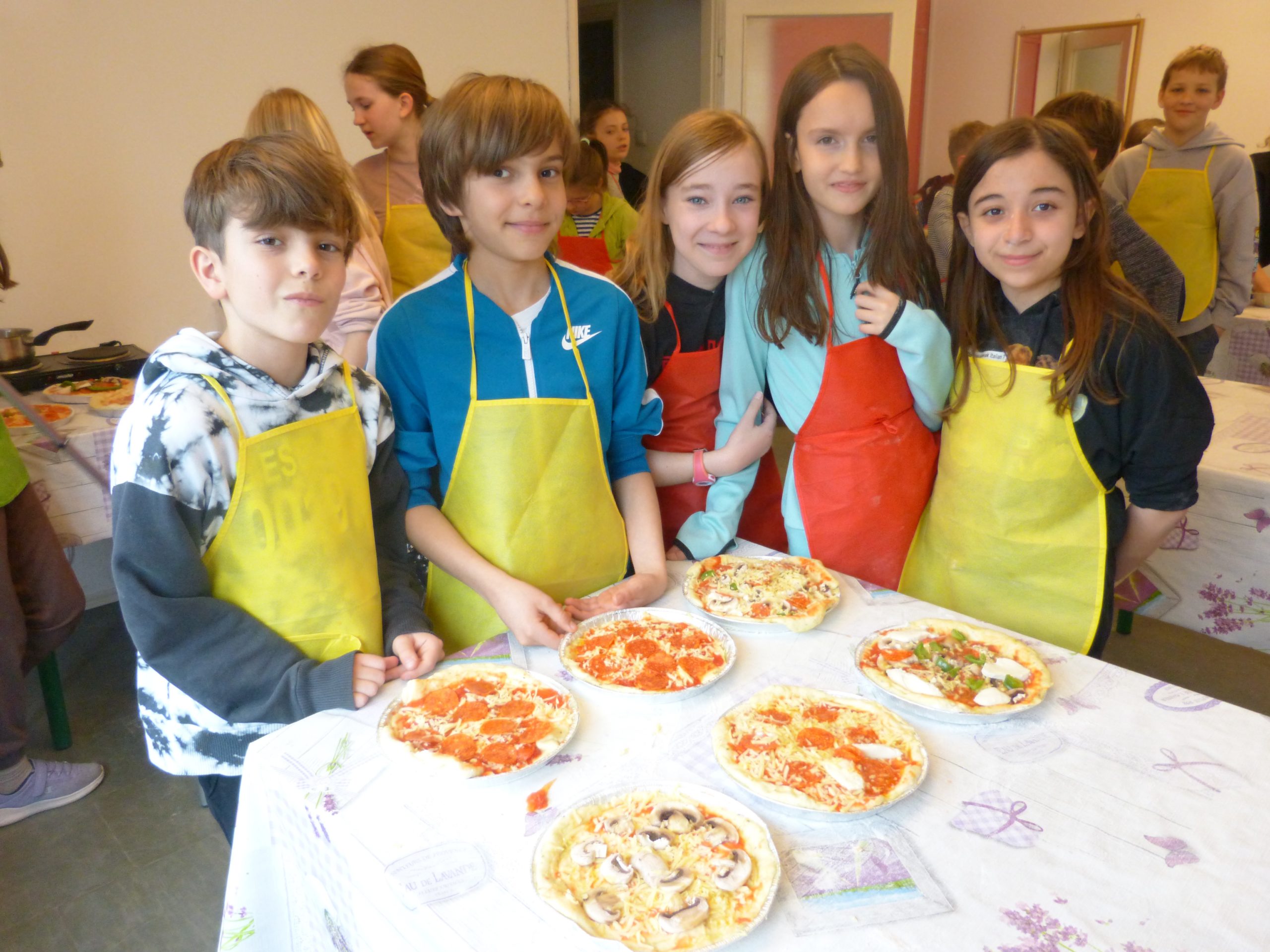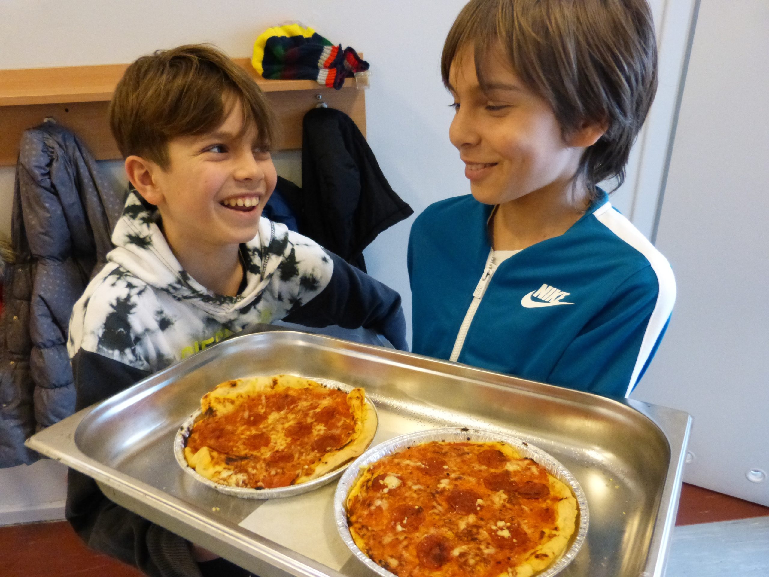 To prepare this recipe that they also love, the pupils of course made everything from scratch. First, they proceeded to prepare their homemade dough, which they left to rest. They then made the tomato sauce that would serve as a base using fresh tomatoes, garlic, olive oil, onions and oregano, and then proceeded to chop up the various toppings (mushrooms, peppers, goat cheese, mozzarella…). Finally, they all assembled their own pizza using the ingredients of their choosing and put it in the oven!