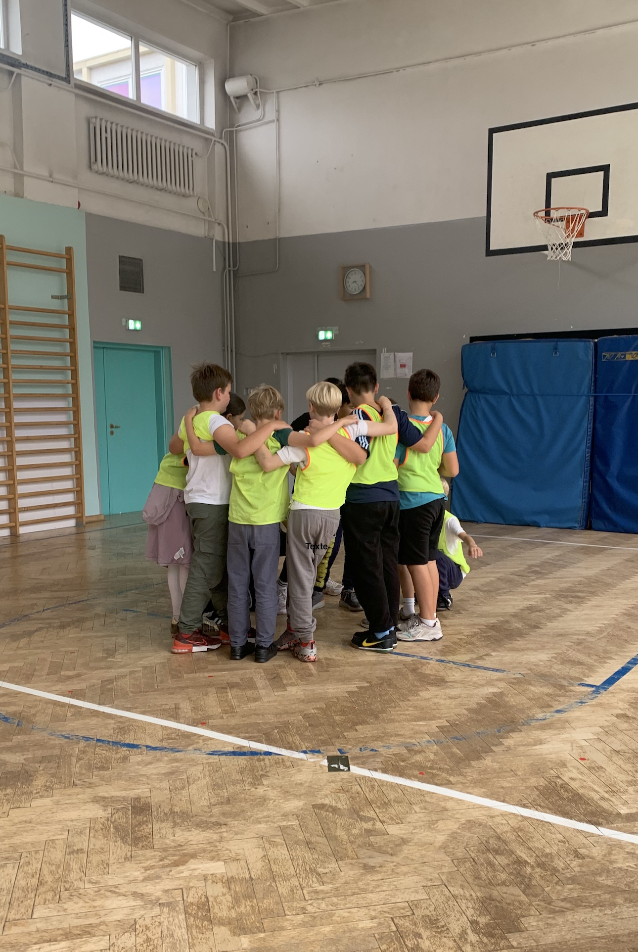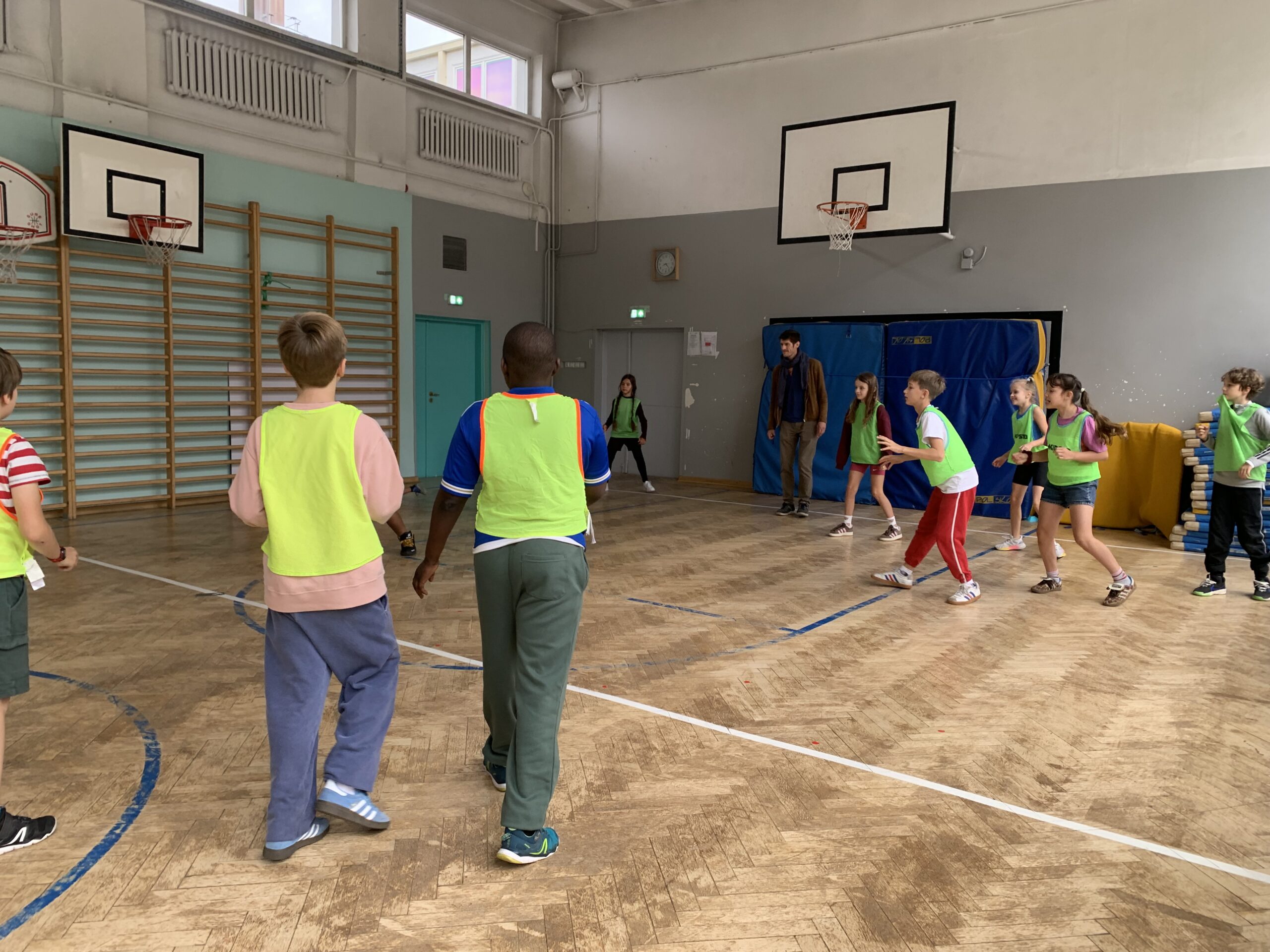 Leur destination était l’école primaire à Sadyba, où ils ont été accueillis avec une liesse contagieuse par les élèves de CM2 et leurs professeurs. La journée s’est poursuivie avec un programme sportif dense co-animé par les enseignants des deux cycles, mêlant CM2 et collégiens autour de plusieurs disciplines : basket, relai, football et balle brionnaise.