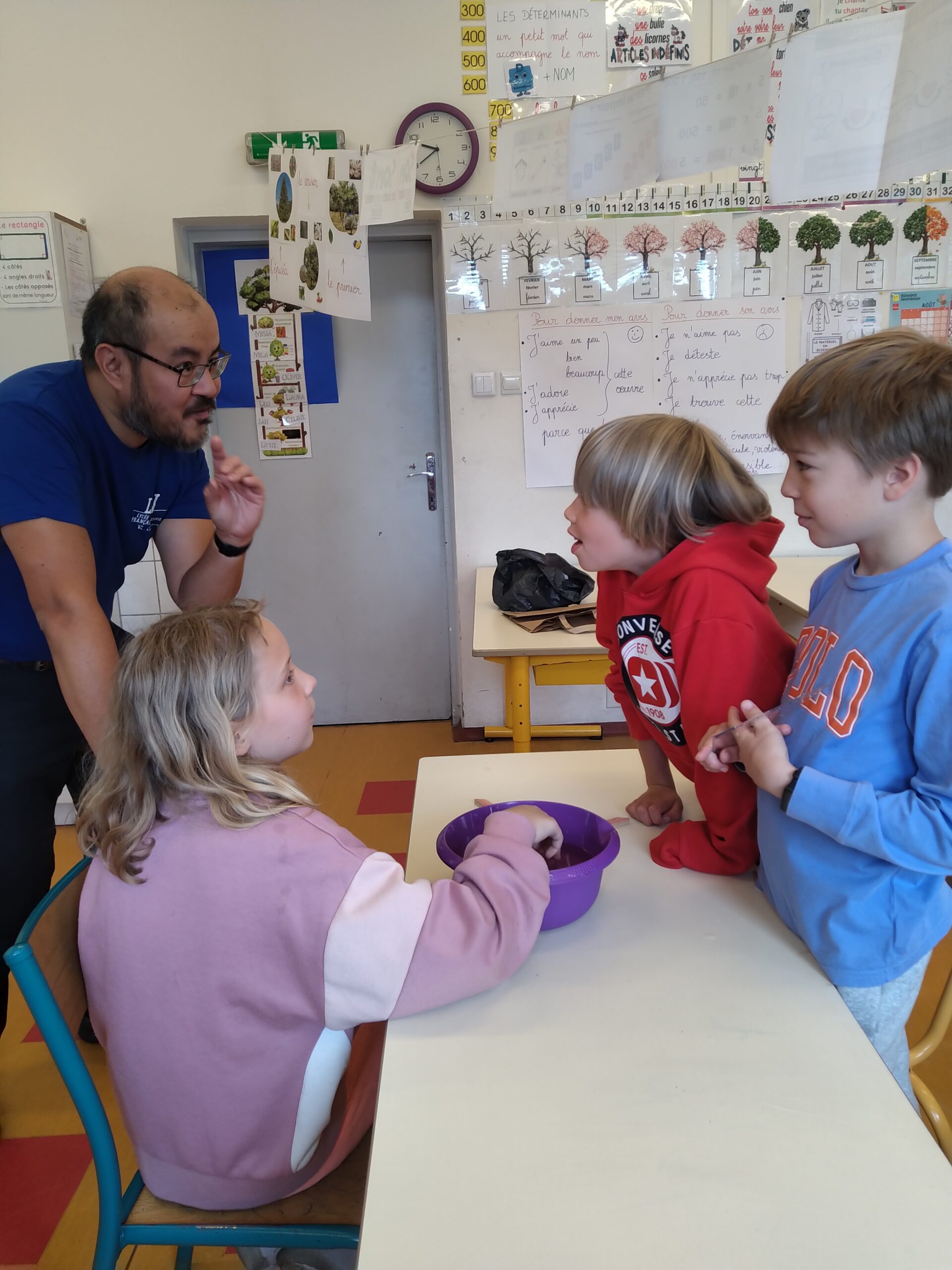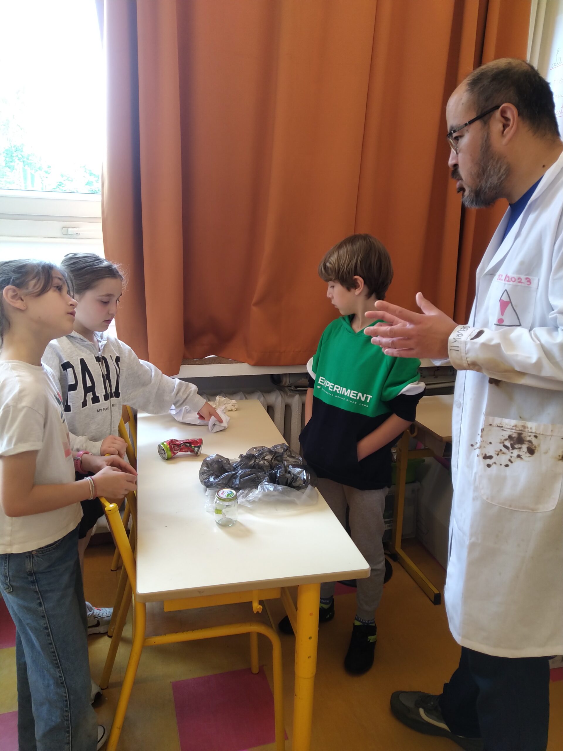 L’objectif principal était de permettre aux élèves de CE2 d’entrer en contact direct avec un scientifique et d’aborder avec lui les fondements de la démarche scientifique. M. Santasouk a débuté ses interventions en s’inspirant d’un roman policier jeunesse. Les élèves ont ainsi été invités à retrouver des indices, émettre des hypothèses, et les valider, faisant un lien concret entre l’enquête policière et la rigueur scientifique.