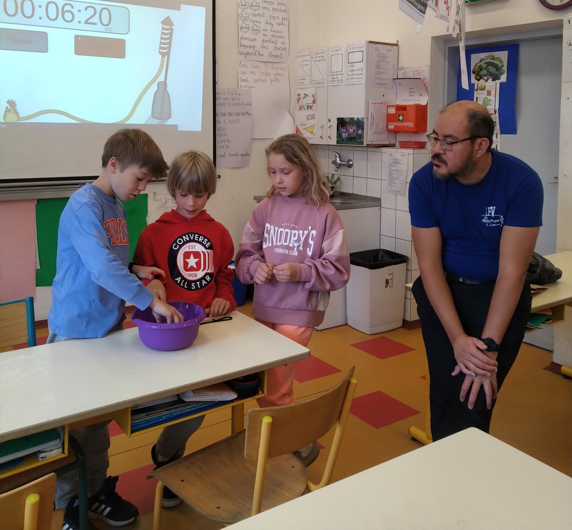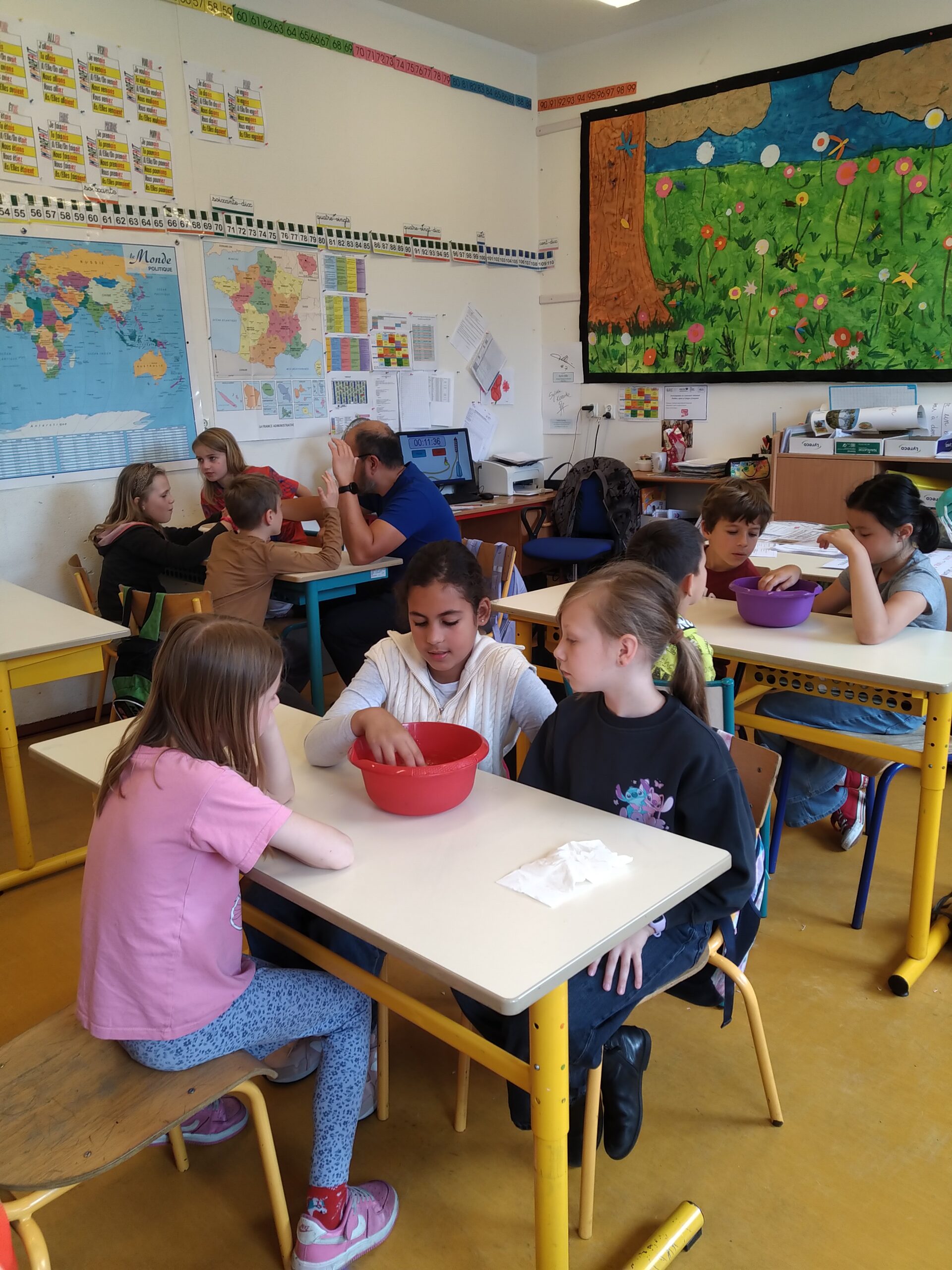Les 8 et 22 mai, dans le cadre de leur projet « Les petits scientifiques » et des échanges inter-cycles, les élèves de CE2 ont eu le privilège d’accueillir dans leur classe M. Jean-Paul Santasouk, professeur au collège. Ces séances de sciences ont été une véritable immersion dans le monde de la démarche scientifique.