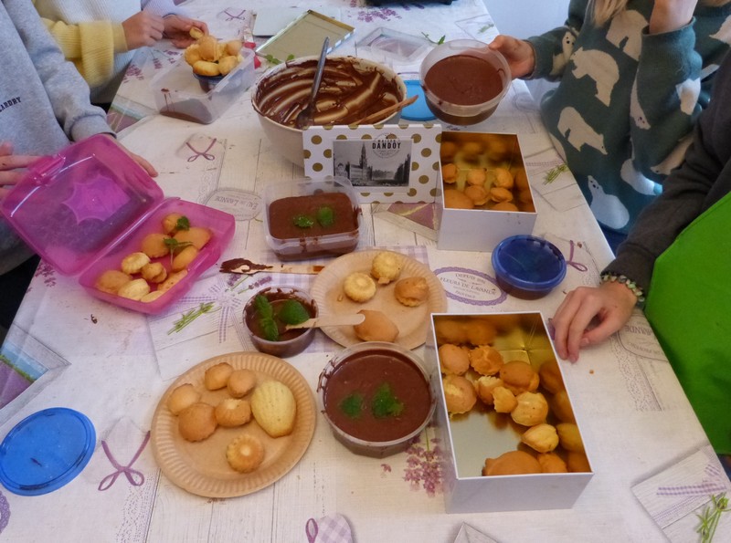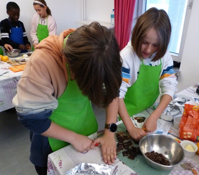 Pour leur troisième atelier, les élèves de CM2 A se sont attaqués à deux grands classiques de la cuisine française : les madeleines et la mousse au chocolat.