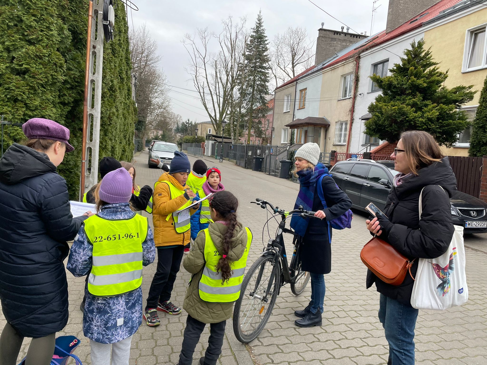 Par groupe de 6 ou 7, accompagnés par des parents et par leur enseignant à vélo, les élèves ont pu explorer le quartier de Sadyba en suivant une feuille de route remplie de questions et de défis à relever. Et bien que les alentours de leur école leur soient familiers, le quartier de Sadyba leur a réservé de nombreuses surprises !