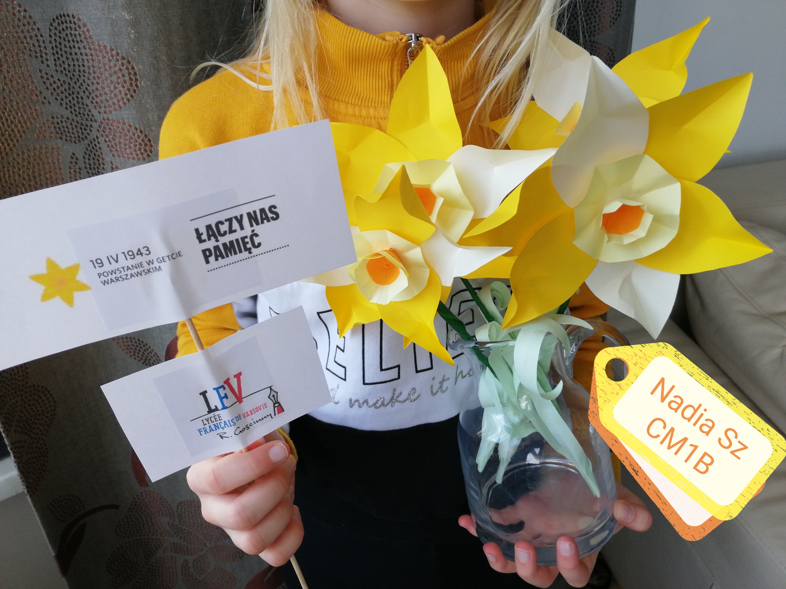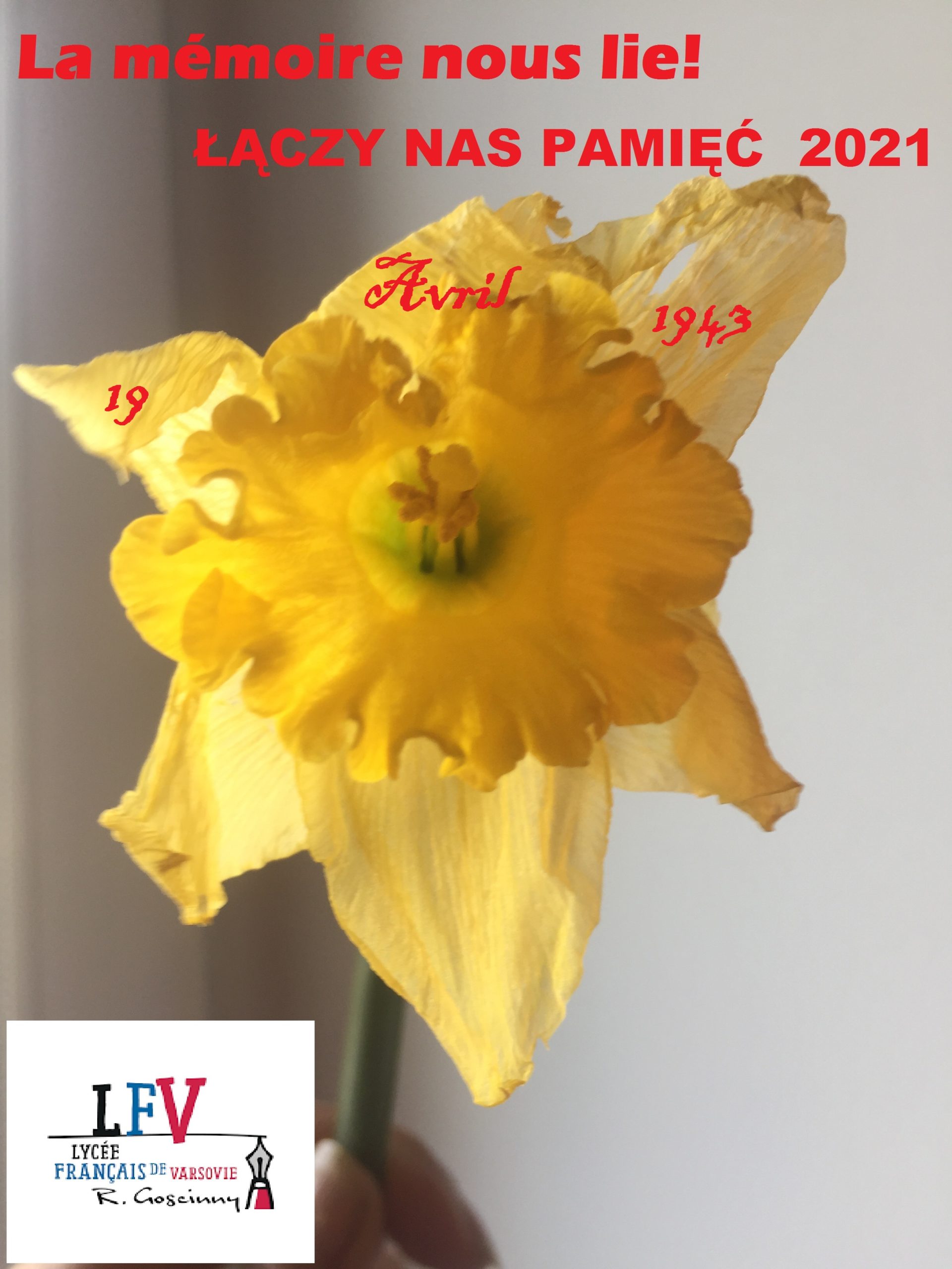 Comme tous les ans depuis 5 ans, le Lycée français de Varsovie participe aux commémorations de l’Insurrection du ghetto de Varsovie organisées en avril par le Musée de l’Histoire des Juifs polonais POLIN. Cette année, et en raison de la situation sanitaire en Pologne, la communauté éducative du LFV a dû réinventer sa participation à l’ « Action Jonquilles » (Akcja Żonkile) au travers de deux projets collaboratifs…
