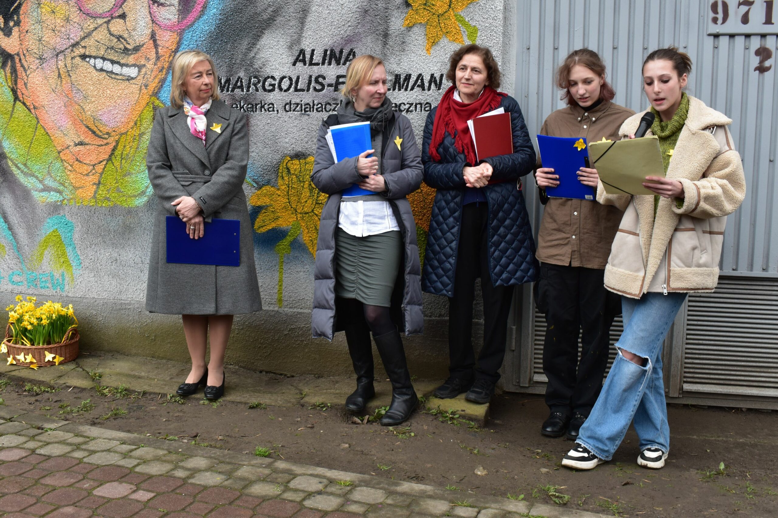 Le mercredi 19 avril a eu lieu le dévoilement de la fresque lors d’une cérémonie en présence de quelques proches d’Alina Margolis-Edelman. Celle-ci a également réuni plusieurs représentants de l’Ambassade de France en Pologne, du bourgmestre du quartier de Praga-Poludnie, du musée POLIN, de la Fondation « Dajemy Dzieciom Siłę », ainsi que la directrice de l’école maternelle n°292 et la communauté du LFV.