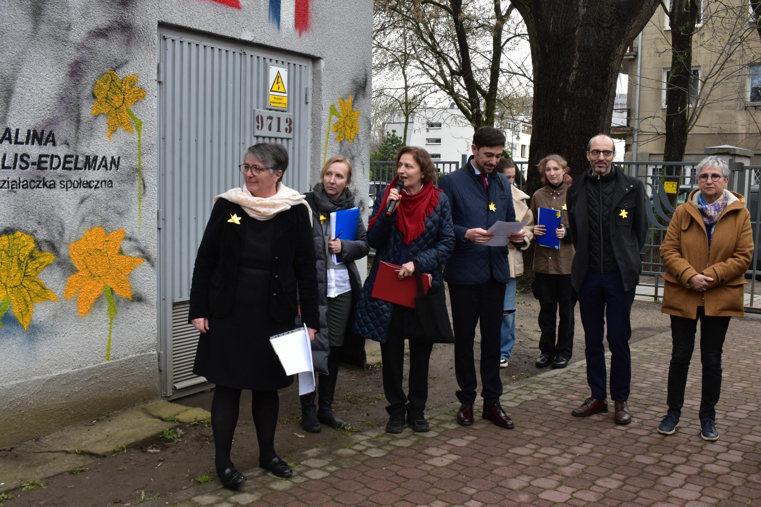 Merci également aux proches d’Alina Margolis-Edelman, à l’Ambassade de France en Pologne, au bourgmestre du quartie de Praga-Poludnie, au musée POLIN, et à la Fondation « Dajemy Dzieciom Siłę » d’avoir répondu présents lors de la cérémonie de dévoilement.