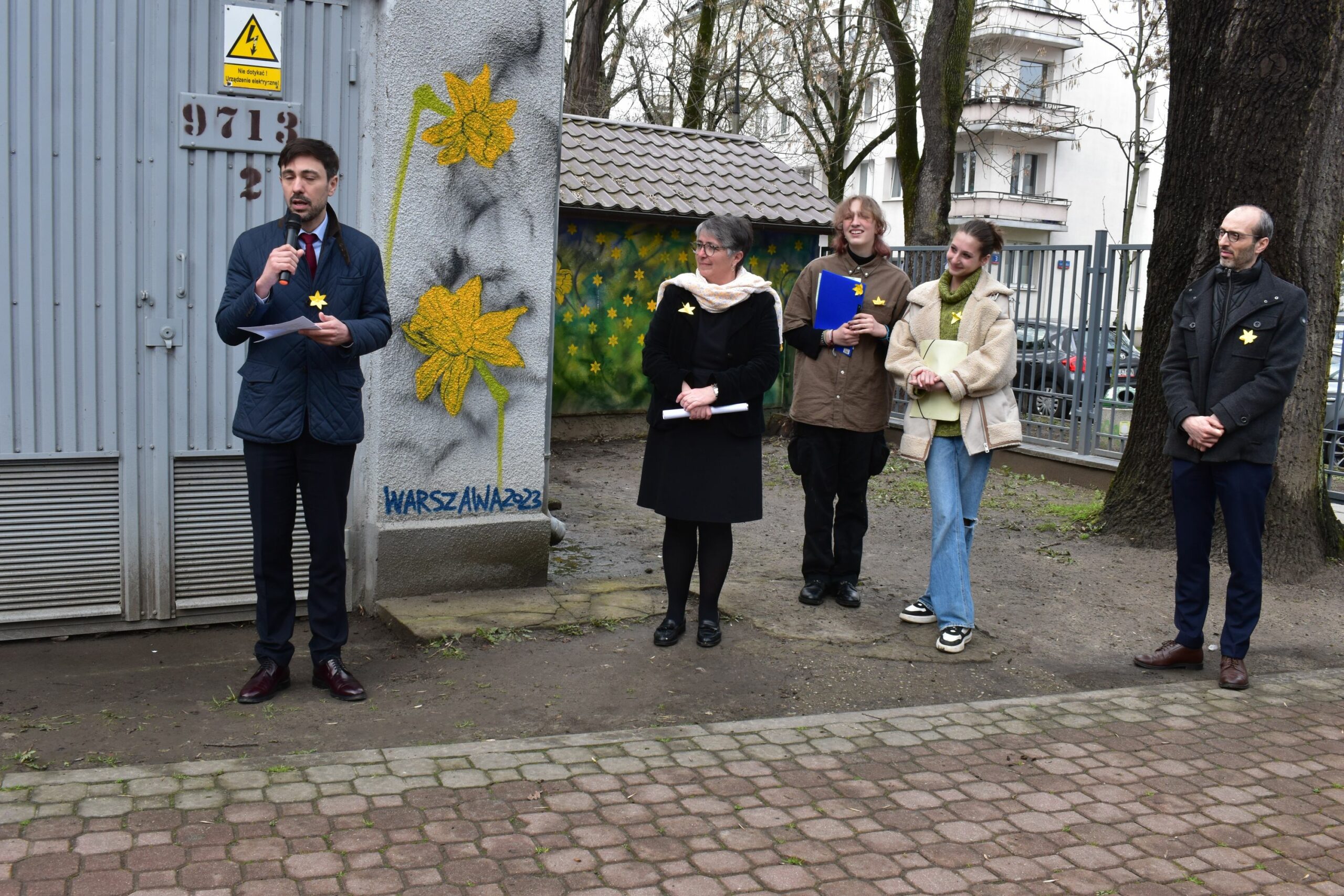 Le mercredi 19 avril, à l’occasion du 80e anniversaire du soulèvement du Ghetto de Varsovie, le Lycée français de Varsovie a dévoilé une fresque murale réalisée par les collégiens et lycéens, en partenariat avec l’artiste Dariusz Paczkowski (3Fala.art) et les élèves de l’école maternelle n°292. Ce projet, porté par Mme Subko, a été réalisé dans le cadre de l’action « Jonquilles » du Musée POLIN, à laquelle nos élèves participent depuis maintenant 8 ans.