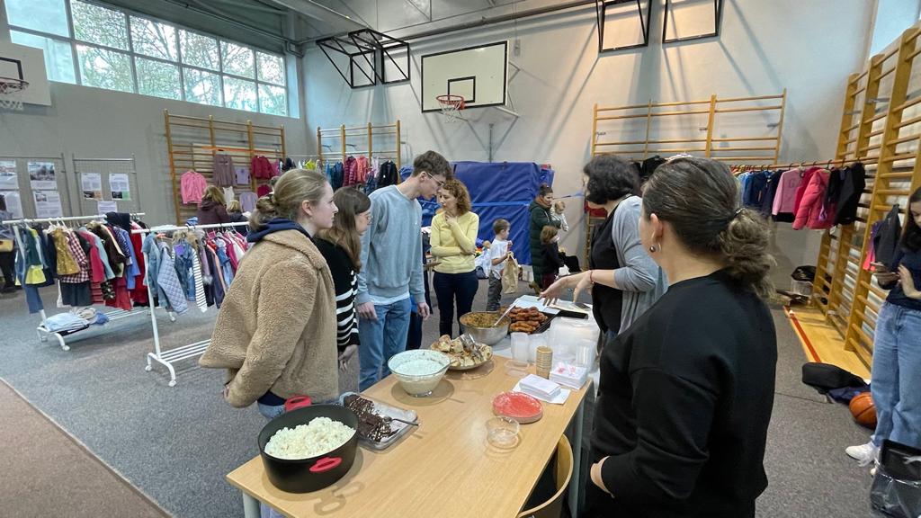Pour faire de cette nouvelle édition un succès, plusieurs familles ont activement participé à la préparation de la braderie en triant, lavant, pliant et étiquetant avec soin les vêtements qui ont été mis en vente ce jour-là. Des membres de la communauté turque ont également organisé un buffet dont les ventes ont été reversées aux victimes des séismes qui ont touché la Turquie et la Syrie via la Fondation de France.