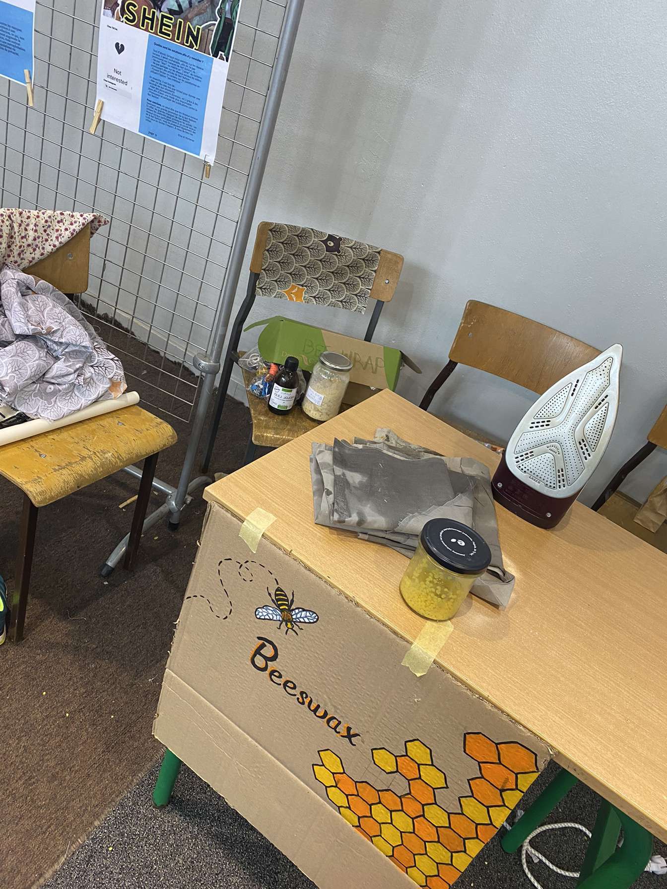 En plus de pouvoir acquérir des vêtements de seconde main, les participants ont aussi été invités à donner une seconde vie à leurs vêtements et chutes de tissus oubliés. Ils ont pu ainsi créer leurs propres Beewrap et confier leurs petits trésors à Aga, professionnelle de la réparation et des retouches de vêtements, afin qu’elle réalise des retouches et réparations.