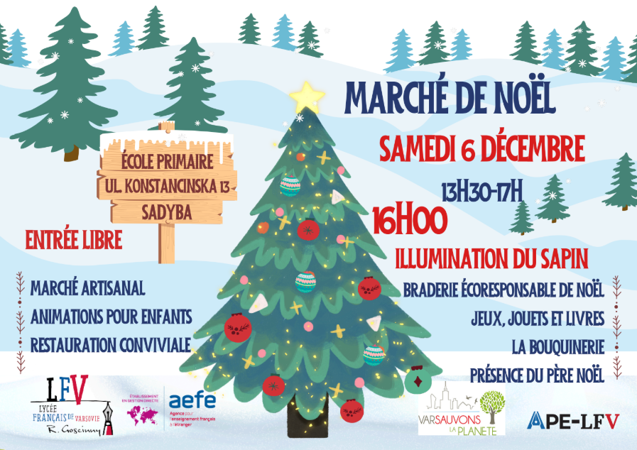 Samedi 6 décembre, de 13h30 à 17h, l'école de Sadyba vous ouvre ses portes pour un marché de Noël exceptionnel.