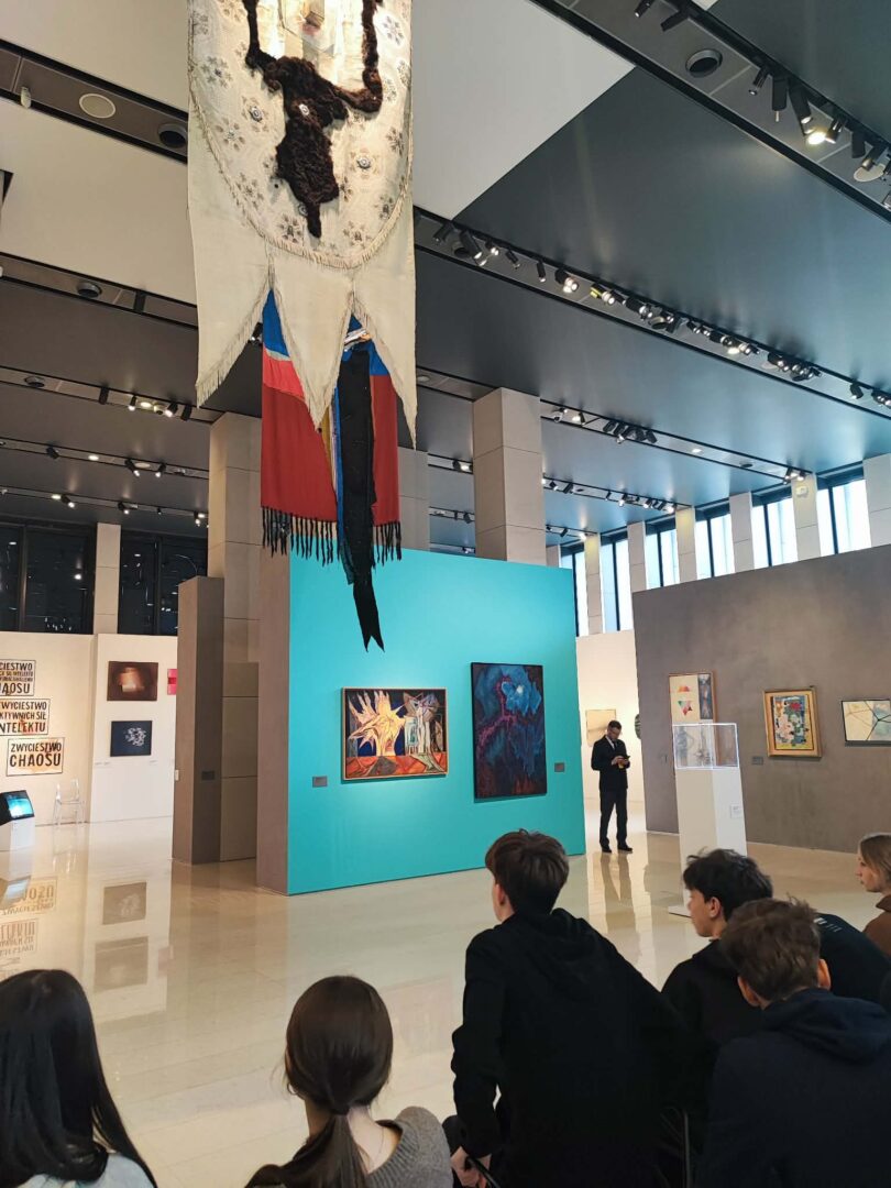Au programme : une immersion totale dans l’exposition « Lumière. Pratiques de la résilience ». Pendant près de deux heures, la classe a bénéficié d’une visite guidée exceptionnelle menée par Mme Roma Radwańska, historienne de l’art au Musée National.