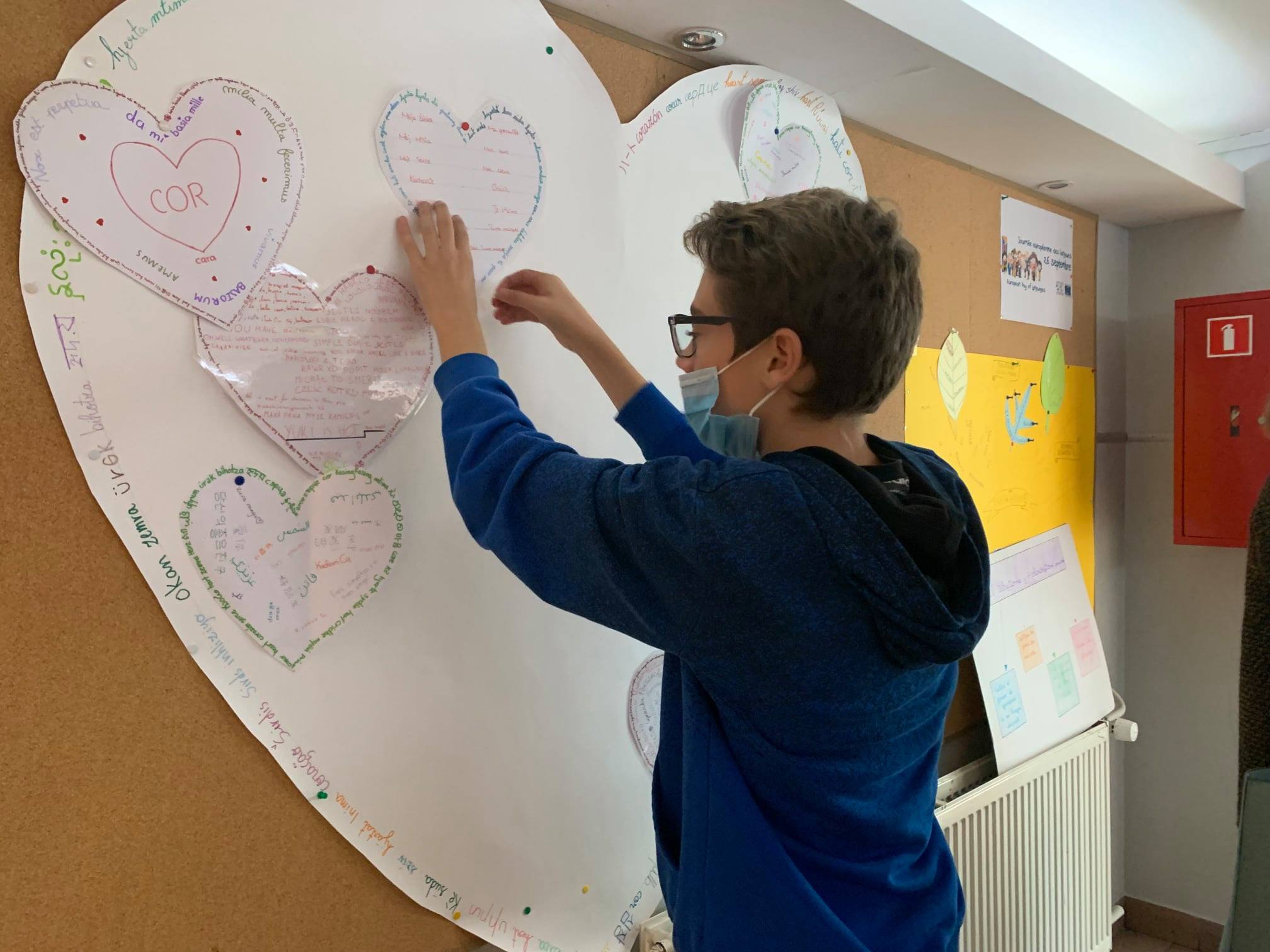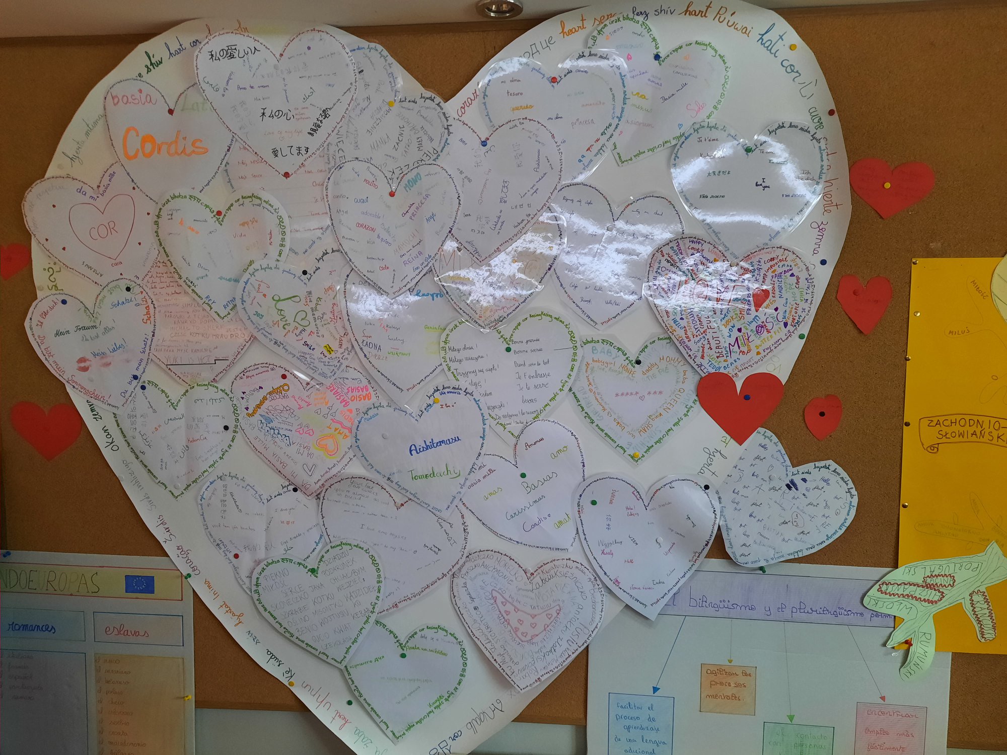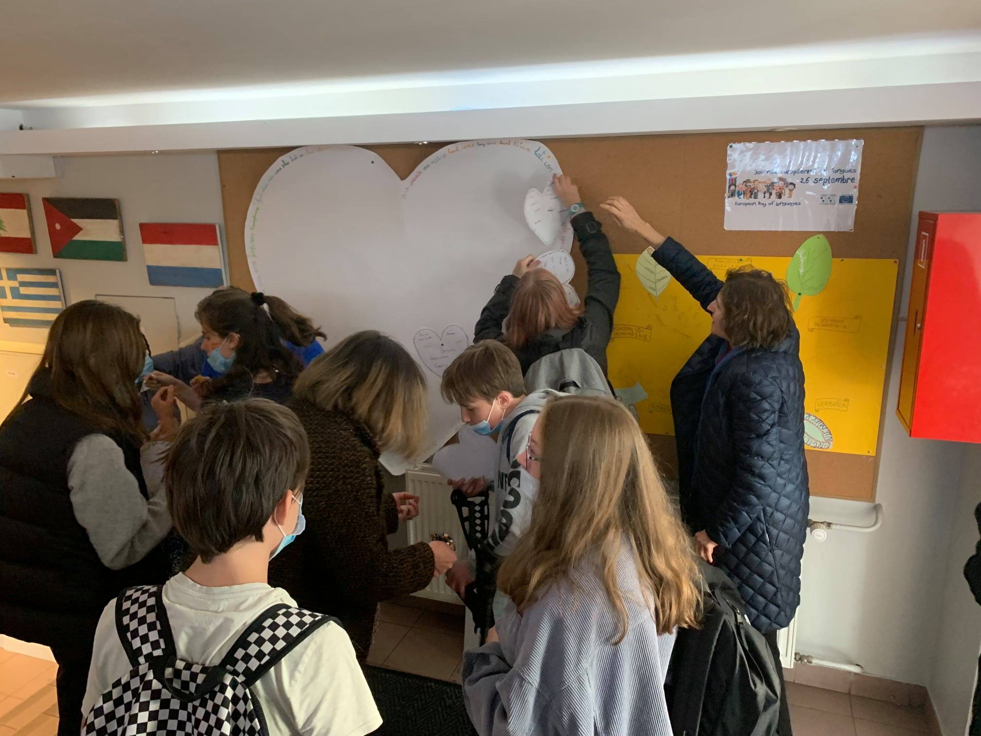 Języki nauczane w gimnazjum to angielski, niemiecki, hiszpański, polski i łacina. Każdy uczeń mógł więc napisać wybrane słowo lub słowa w ulubionym języku na papierowym sercu, które następnie było przyczepiane na tablicy w korytarzu w budynku B. Ten swoisty kącik poetycki to była również doskonała okazja, aby poznać bogactwo językowe Europy i dowiedzieć się więcej o rodzinach językowych i ich podobieństwach.