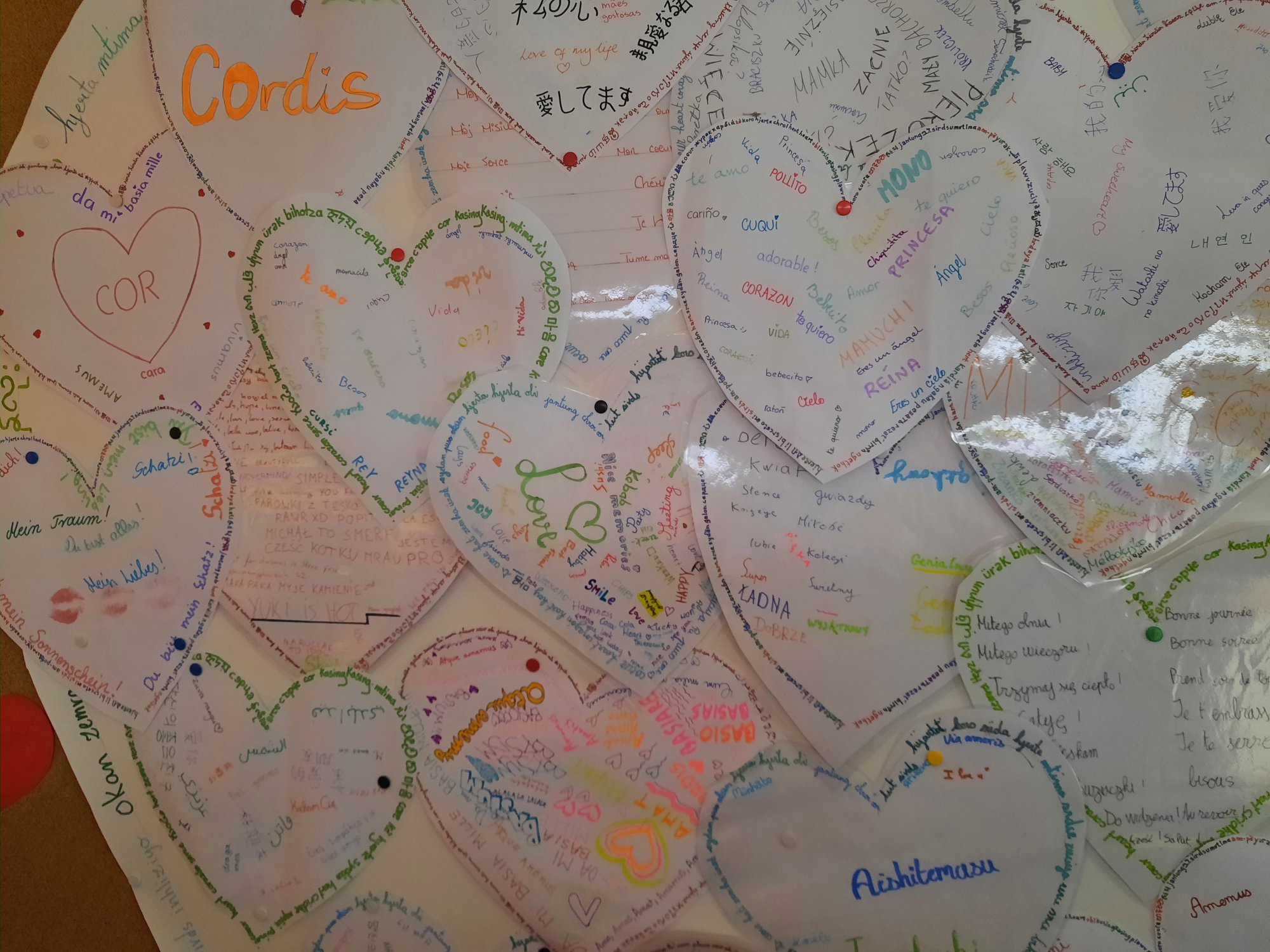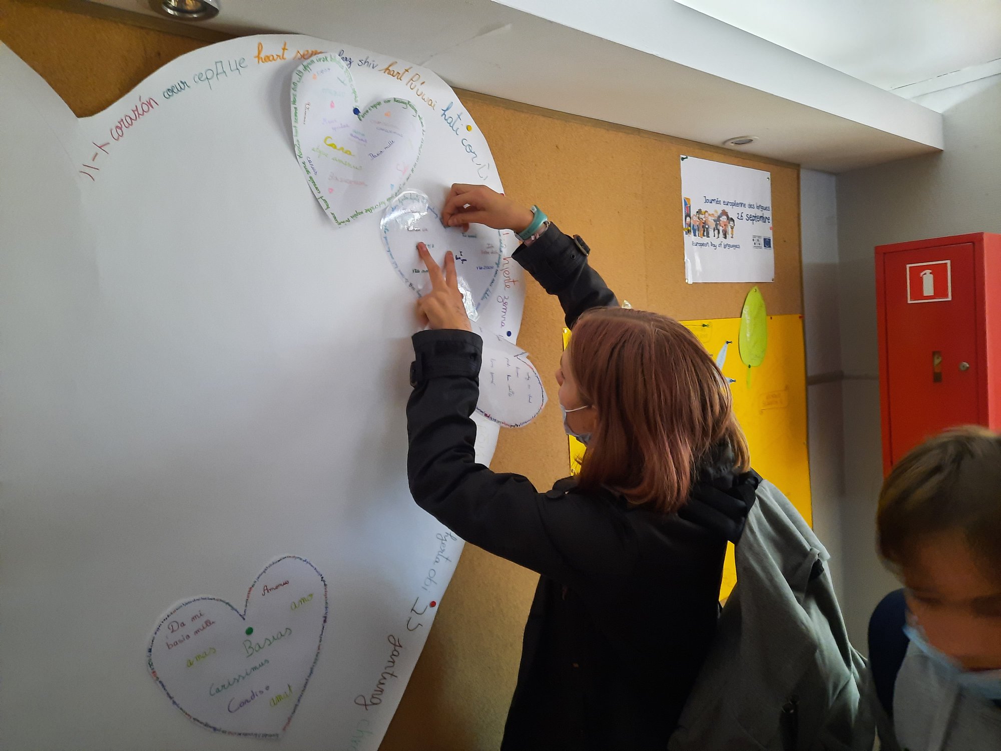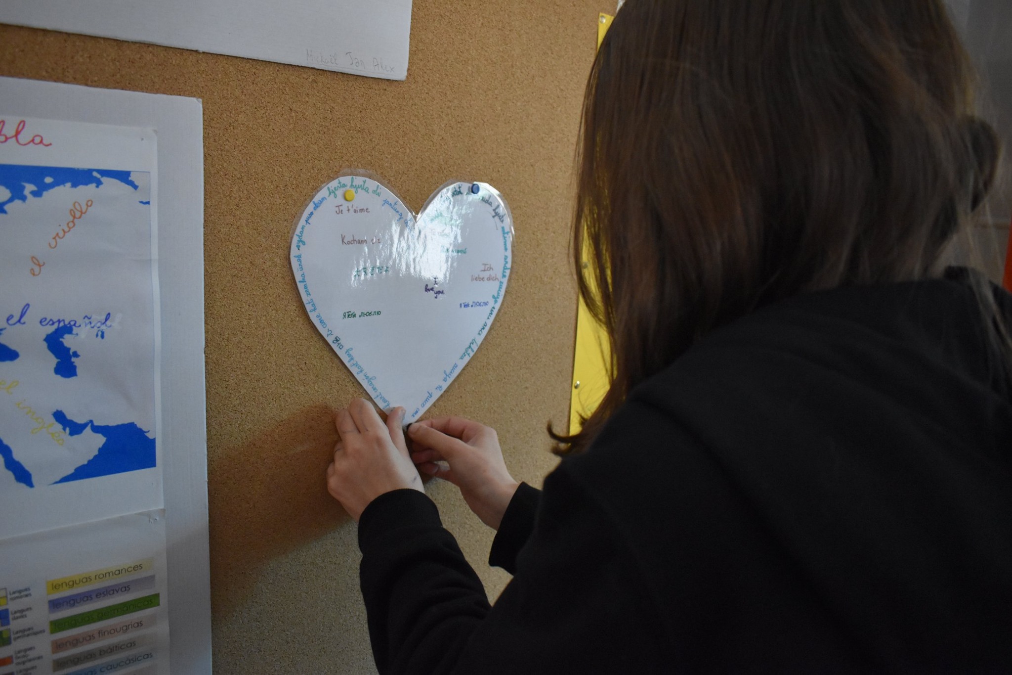Języki nauczane w gimnazjum to angielski, niemiecki, hiszpański, polski i łacina. Każdy uczeń mógł więc napisać wybrane słowo lub słowa w ulubionym języku na papierowym sercu, które następnie było przyczepiane na tablicy w korytarzu w budynku B. Ten swoisty kącik poetycki to była również doskonała okazja, aby poznać bogactwo językowe Europy i dowiedzieć się więcej o rodzinach językowych i ich podobieństwach.