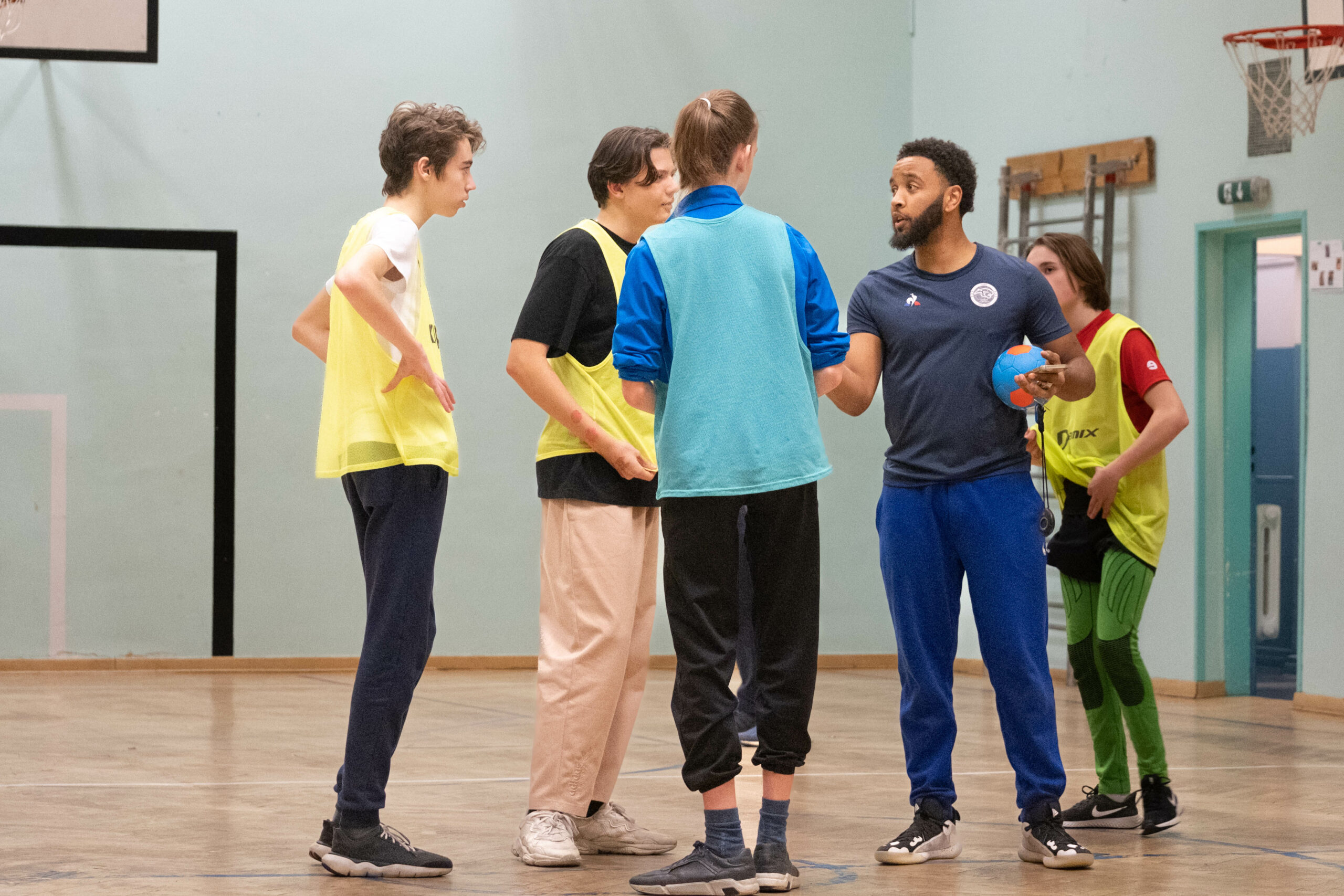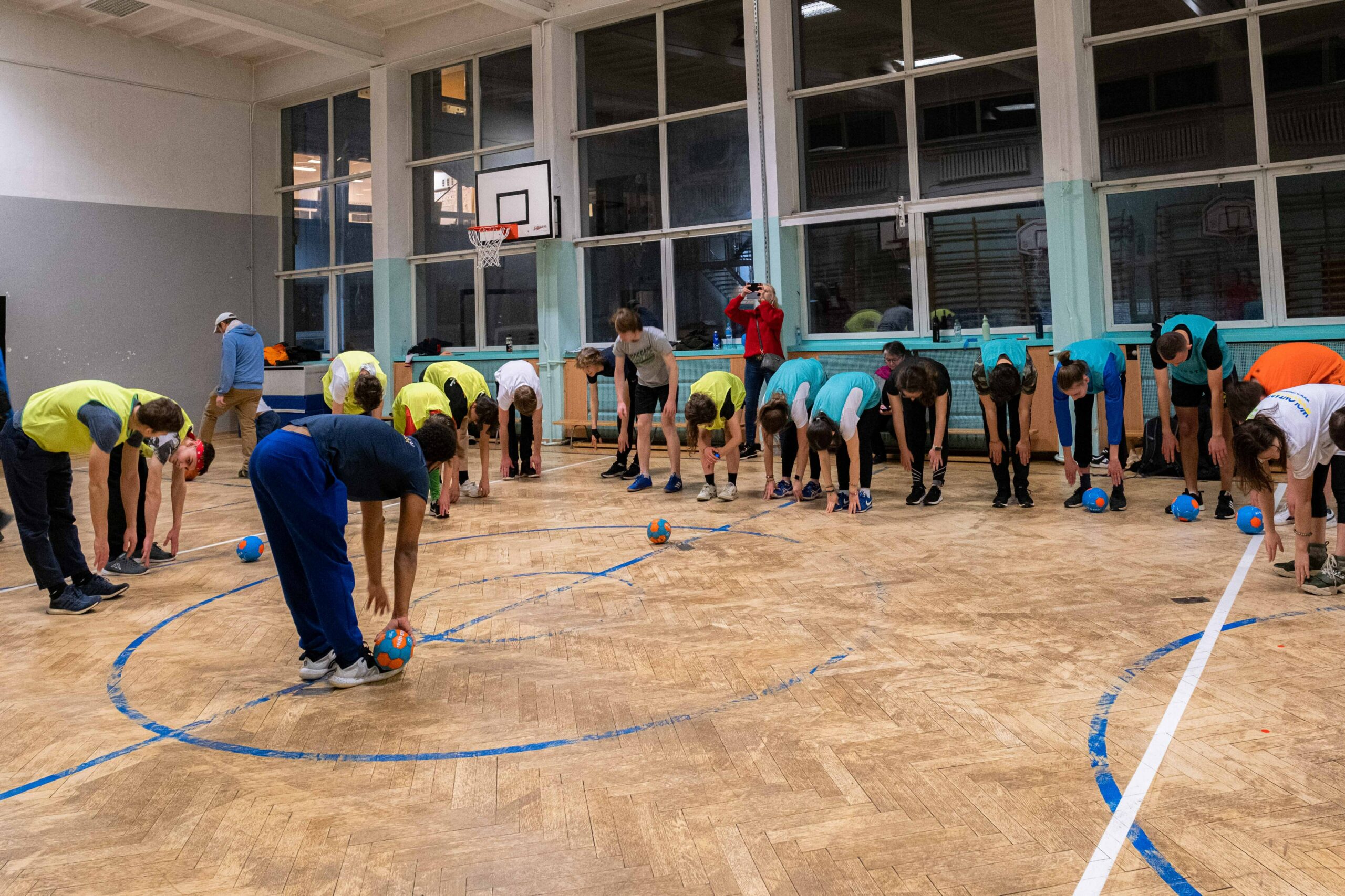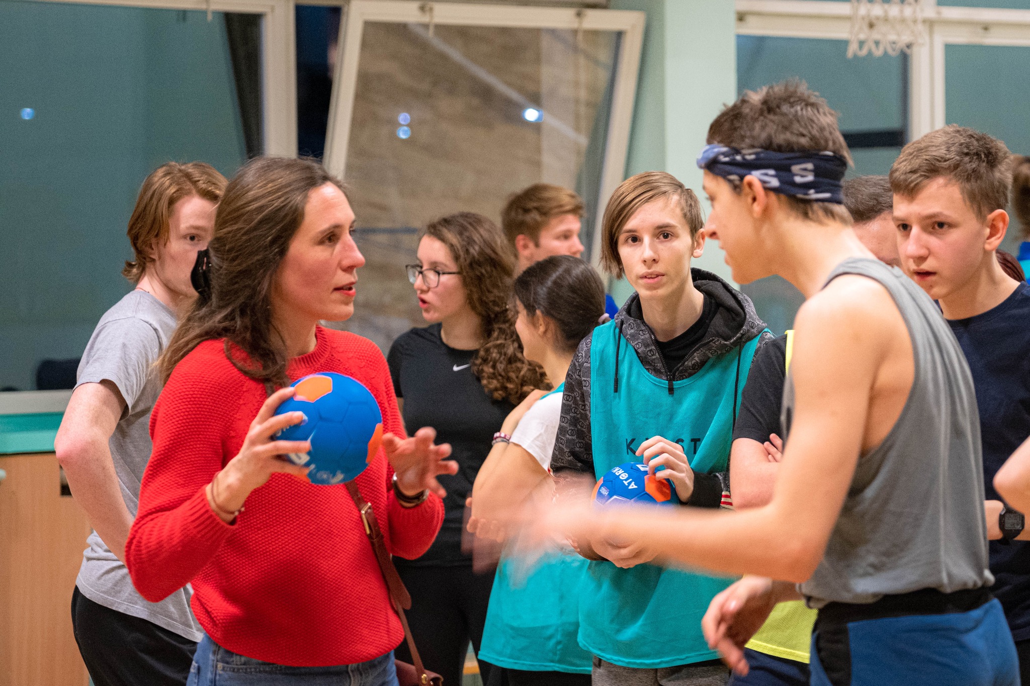 Następnie wszyscy wyszli na boisko na turniej piłki ręcznej pod kierownictwem Illyane’a, eksperta od piłki ręcznej i członka stowarzyszenia Varsovie Accueil.