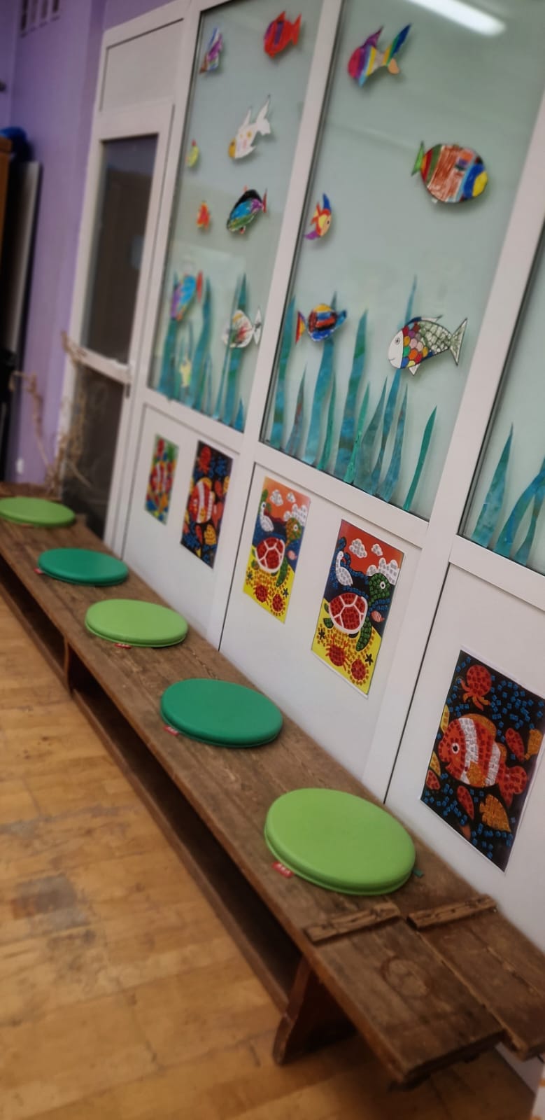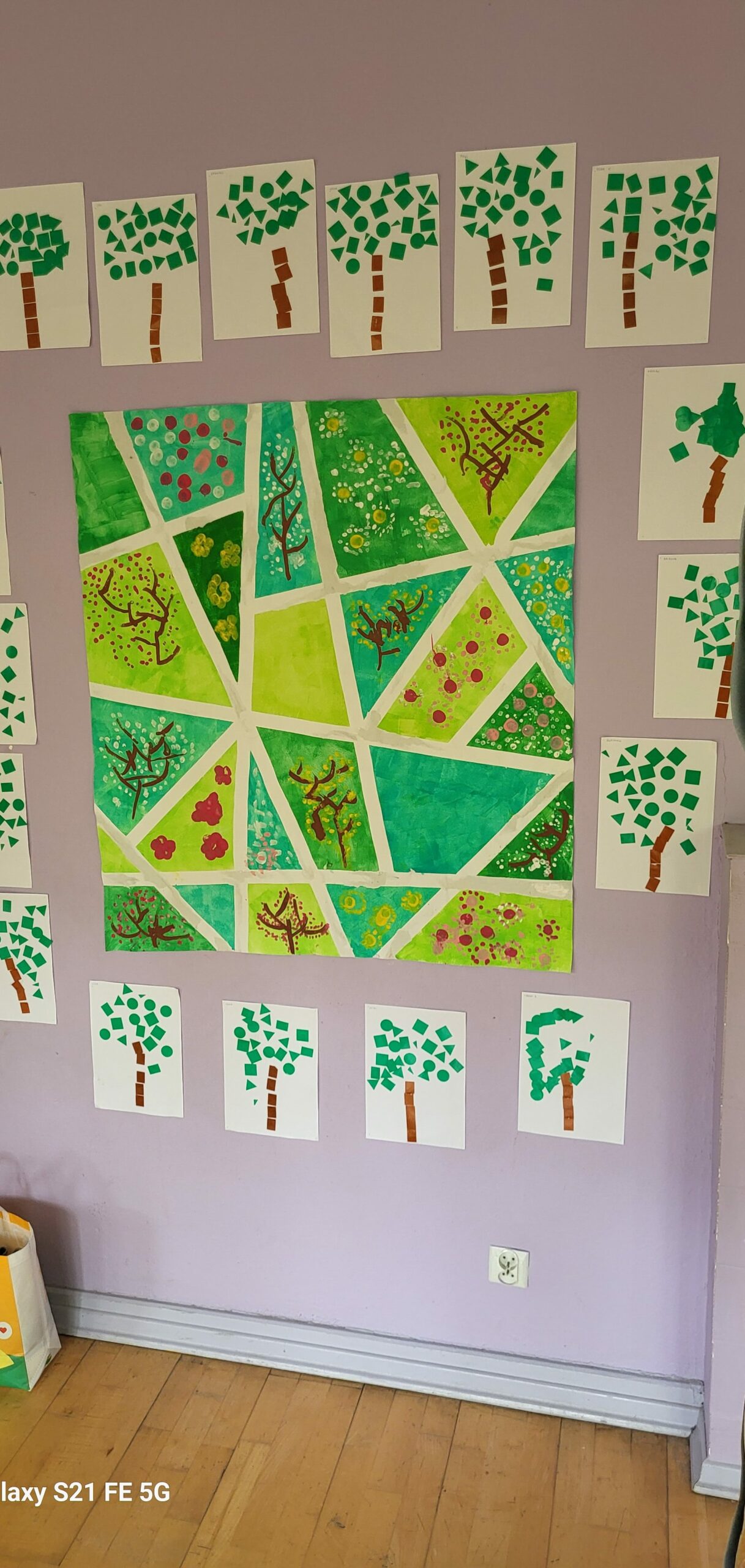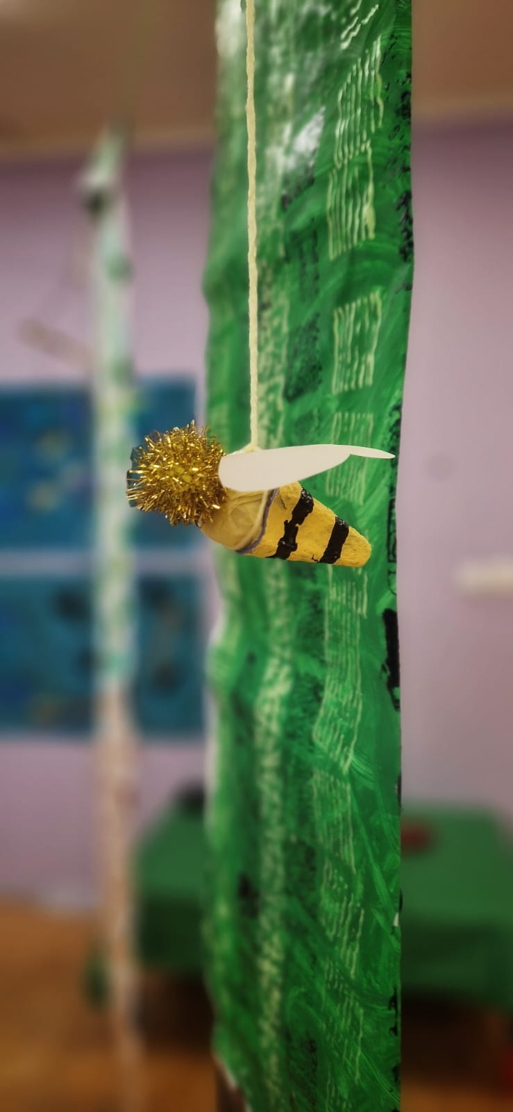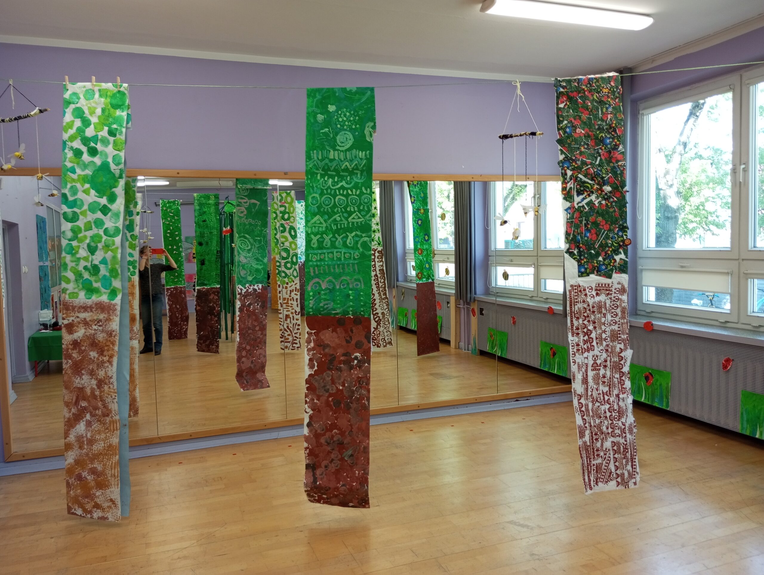 Sala taneczna zamieniła się w magiczny las, zamieszkały przez poetyckie drzewa i cudowne stworzenia. Dzieci z klasy GST uważnie obserwowały zmieniające się pory roku w szkolnym ogrodzie, a następnie odtworzyły kolory i kształty natury w swoich pracach. Świat morski i świat pszczół również zainspirowały ich kreacje, dając życie magicznemu wszechświatowi.