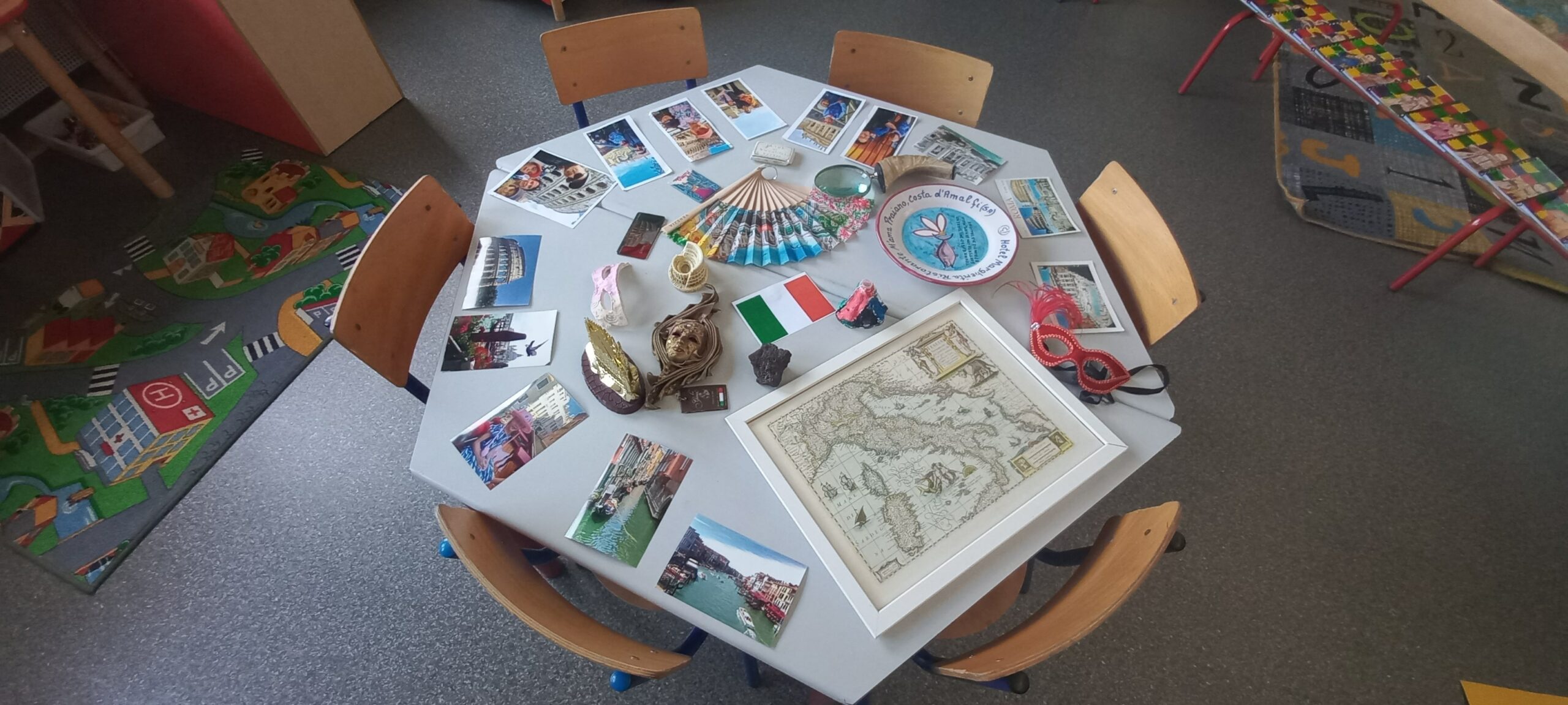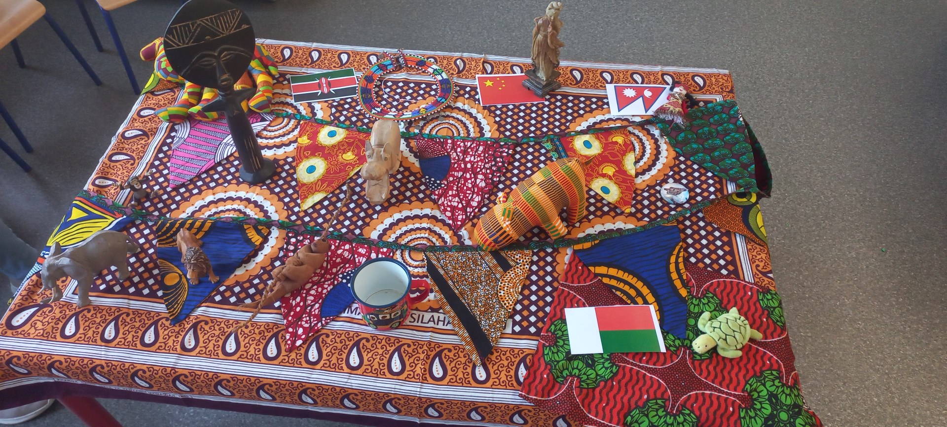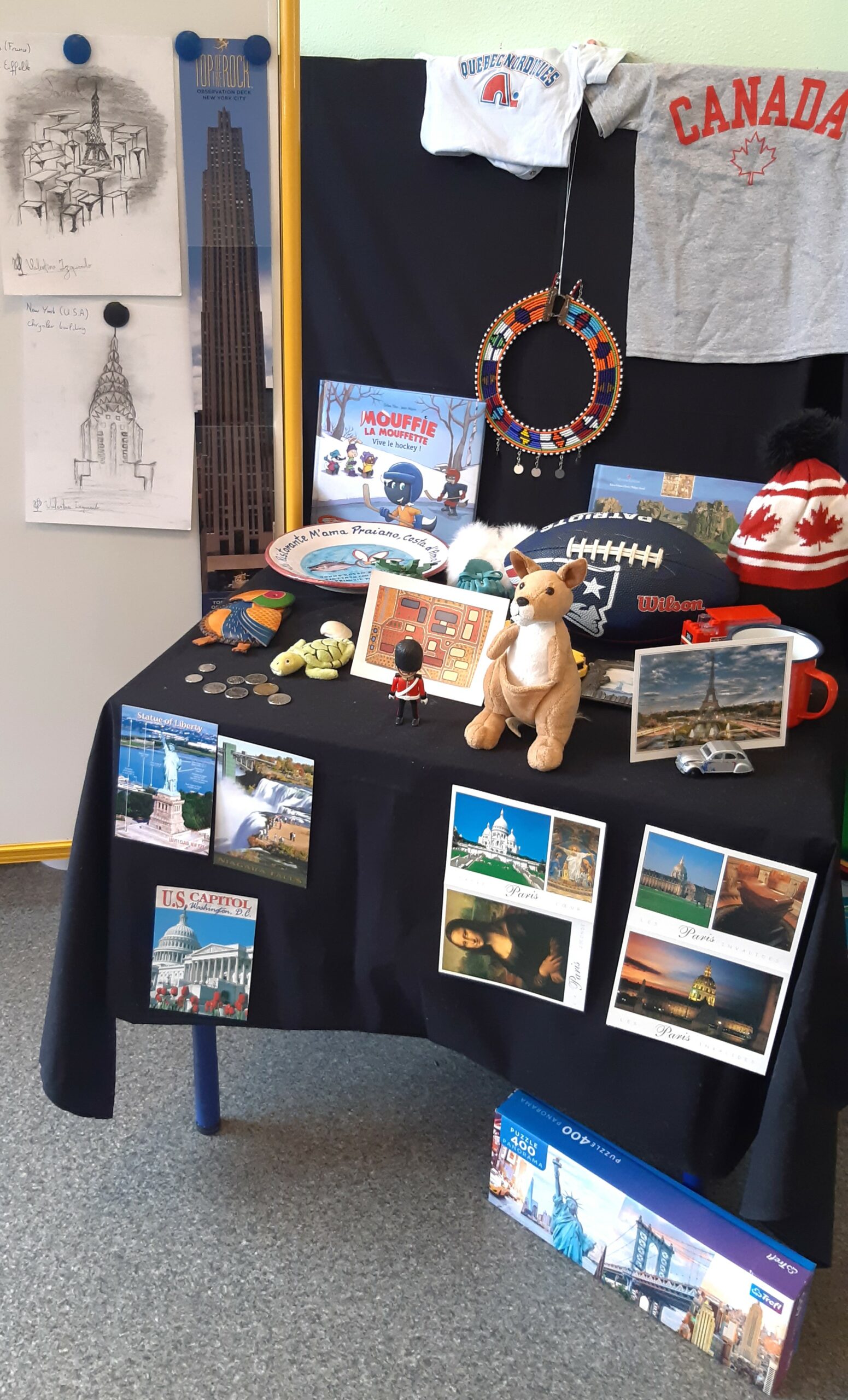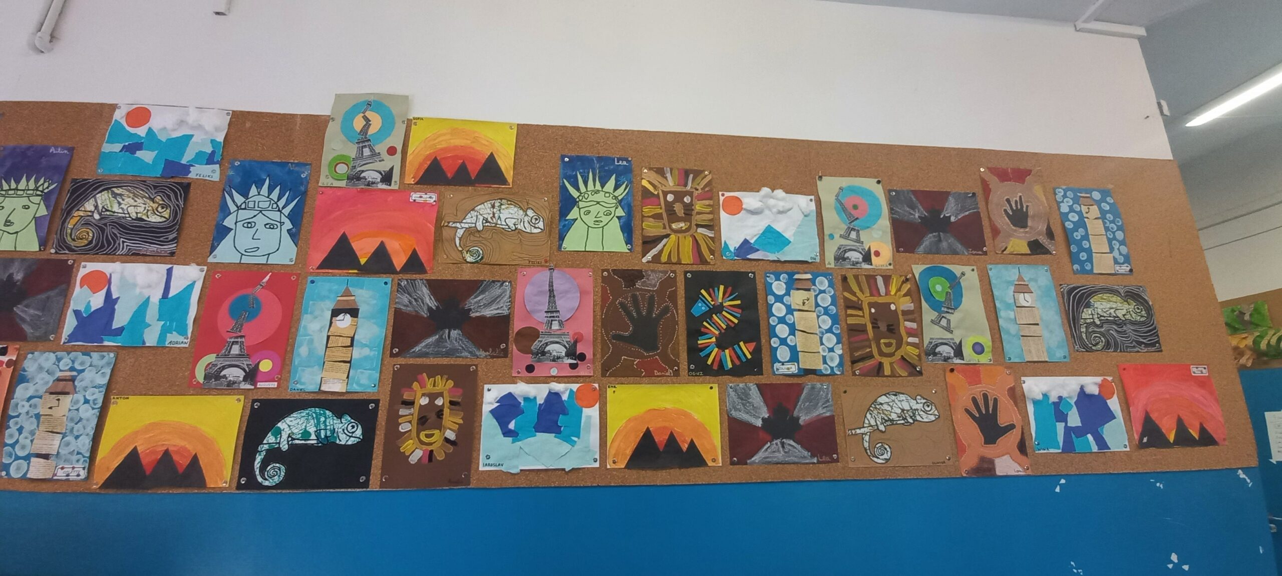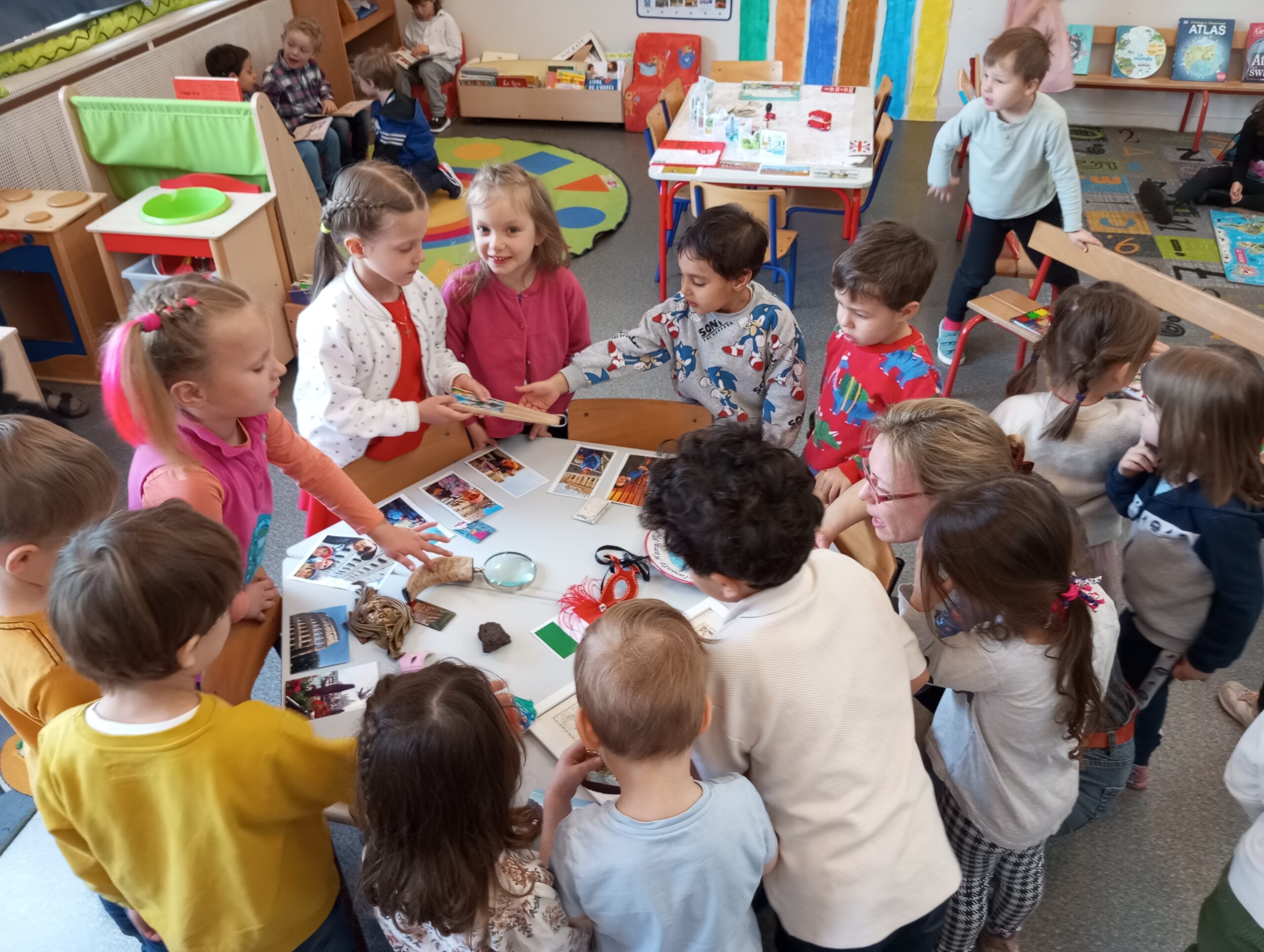 Uczniowie klas MS/GS, GS i GS/CP wyruszyli w wirtualną podróż, odkrywając cztery strony świata. Odkryli dwanaście krajów, podziwiając ich charakterystyczne zabytki, słuchając ich muzyki i zanurzając się w ich kulturach. Przygotowali małe prezentacje, wykorzystując przedmioty przywiezione z rodzinnych podróży. Wystawa zgromadziła te skarby, a także setki prac artystycznych ilustrujących różne kraje i dzienniki podróży naszych młodych odkrywców.