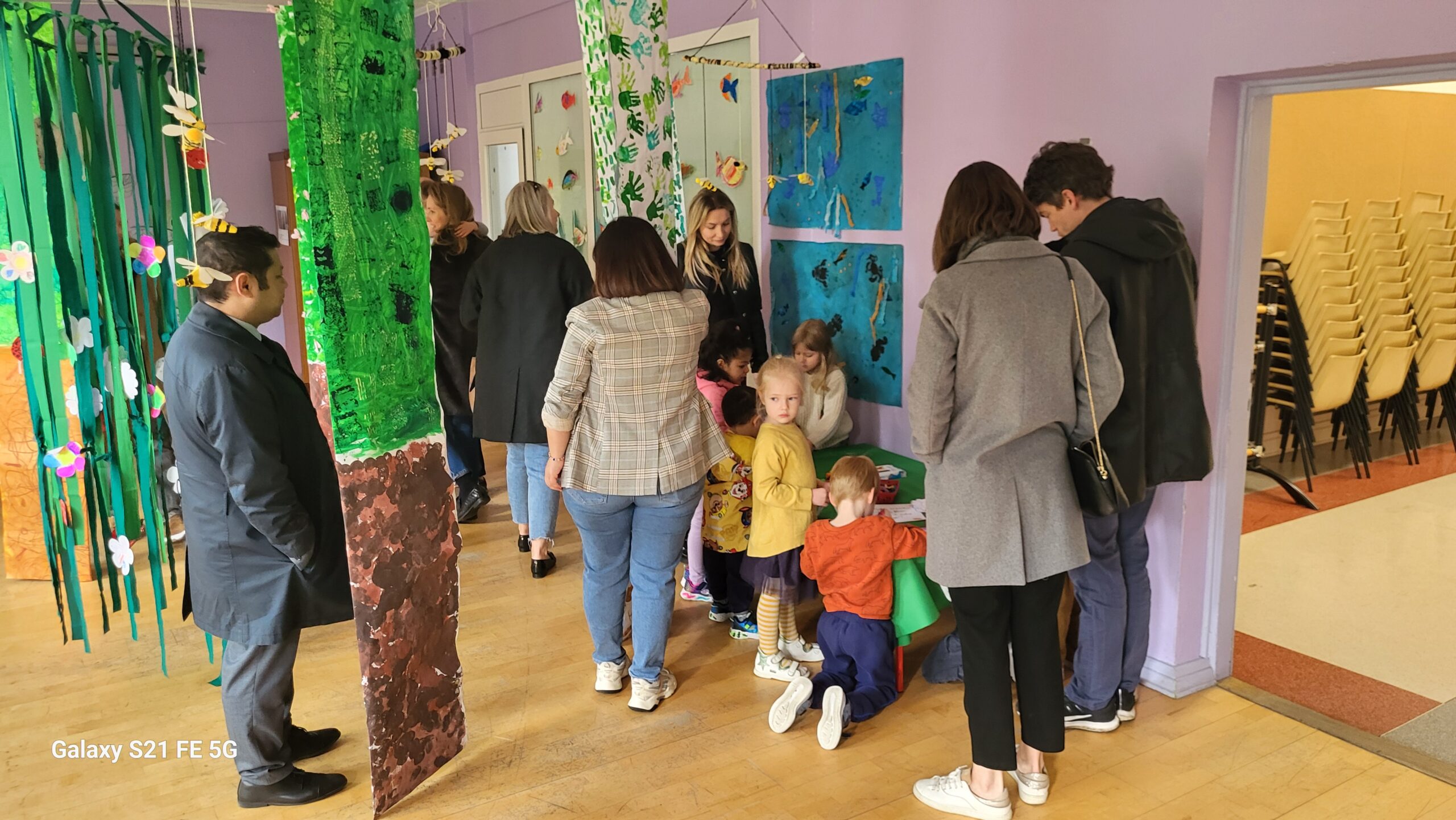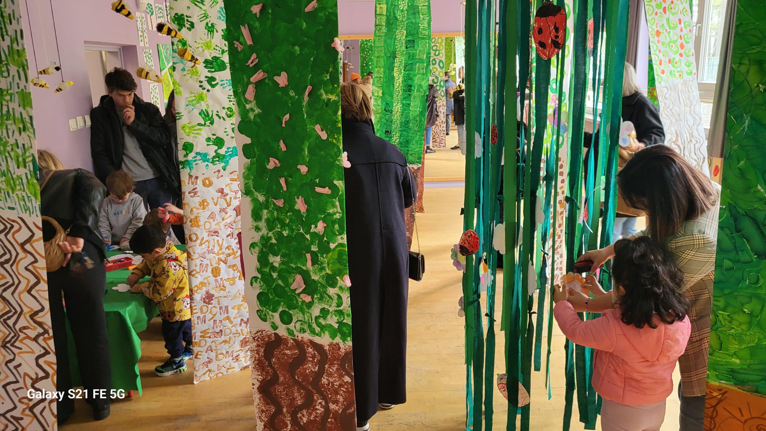 W piątek 19 kwietnia rodziny zostały zaproszone do zanurzenia się w tym zaczarowanym lesie, kołysanym śpiewem ptaków, i udekorowania kwiatów wraz z dziećmi, aby powiesić je na tekstylnym drzewie. To była chwila zachwytu zarówno dla młodszych, jak i starszych.