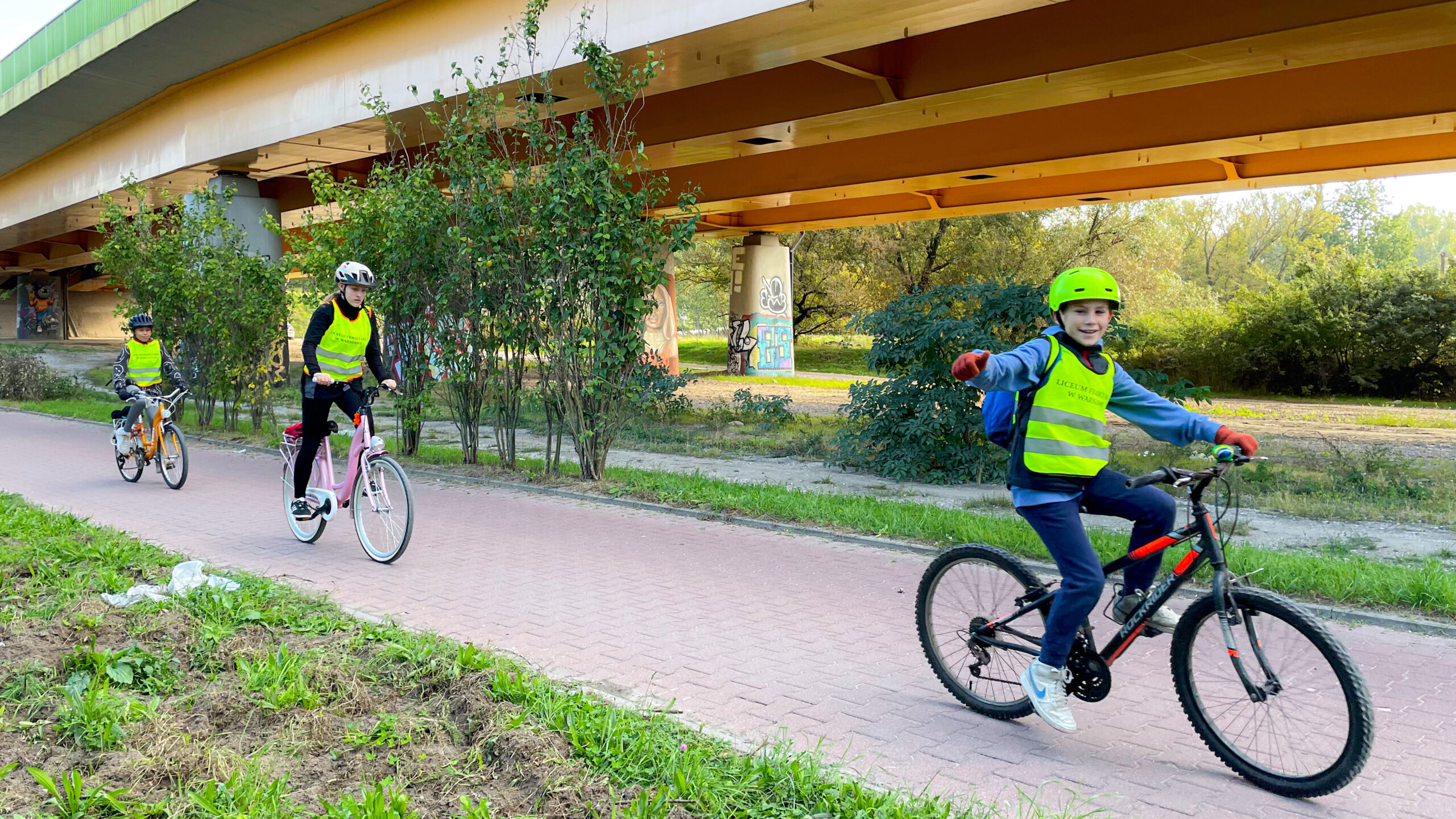 Wyposażeni w rowery, dokładnie sprawdzone wcześniej przez zespół Varsauvons la Planète, uczniowie przejechali warszawskimi ścieżkami rowerowymi, promując ekologiczny środek transportu. Inicjatywa ta doskonale wpisuje się w projekt „RecycleVie”, który wkrótce zostanie uruchomiony w szkole.