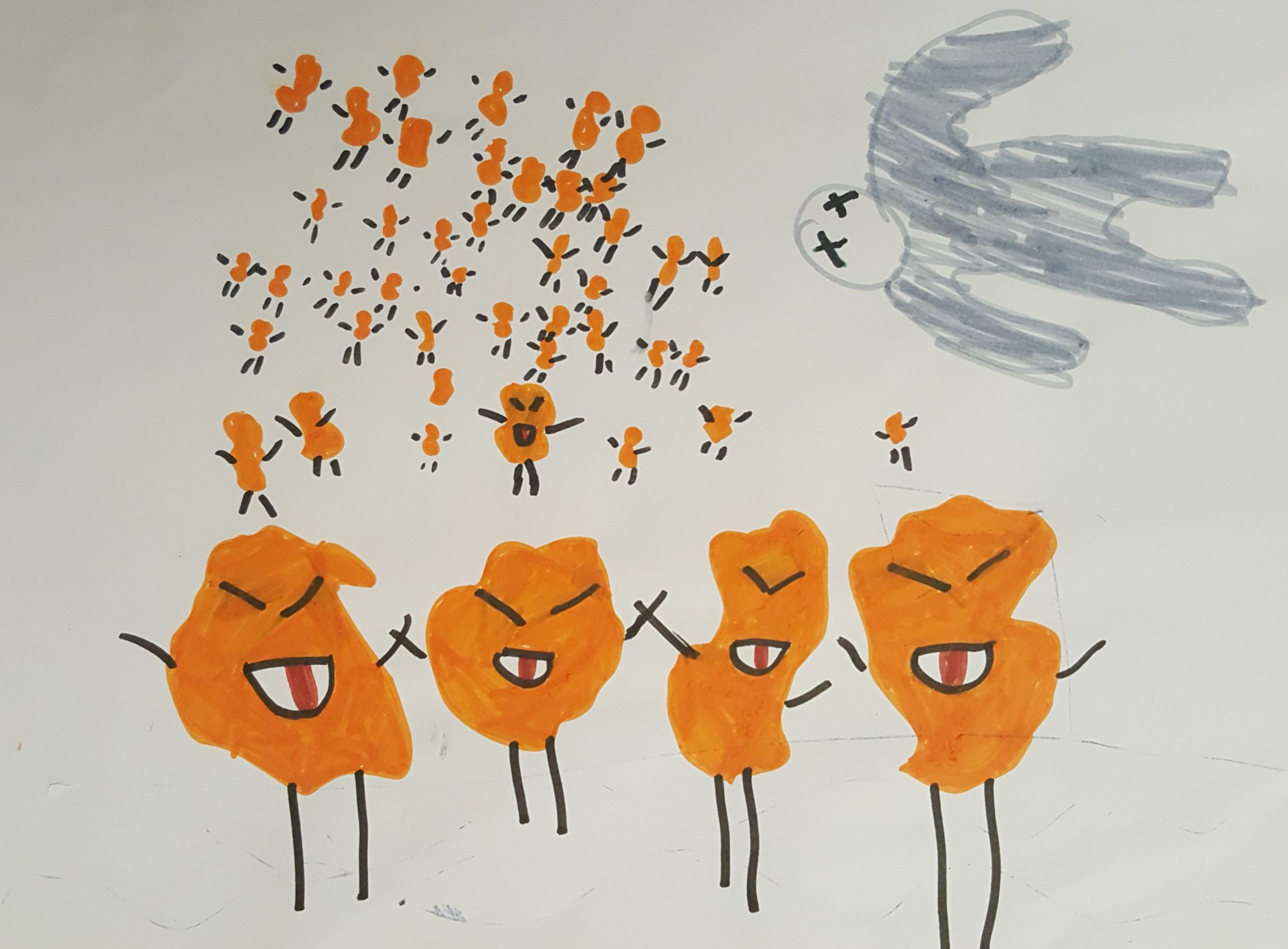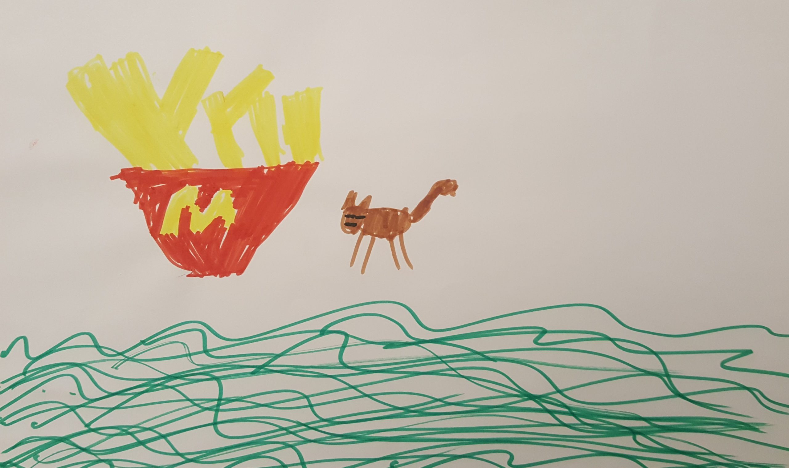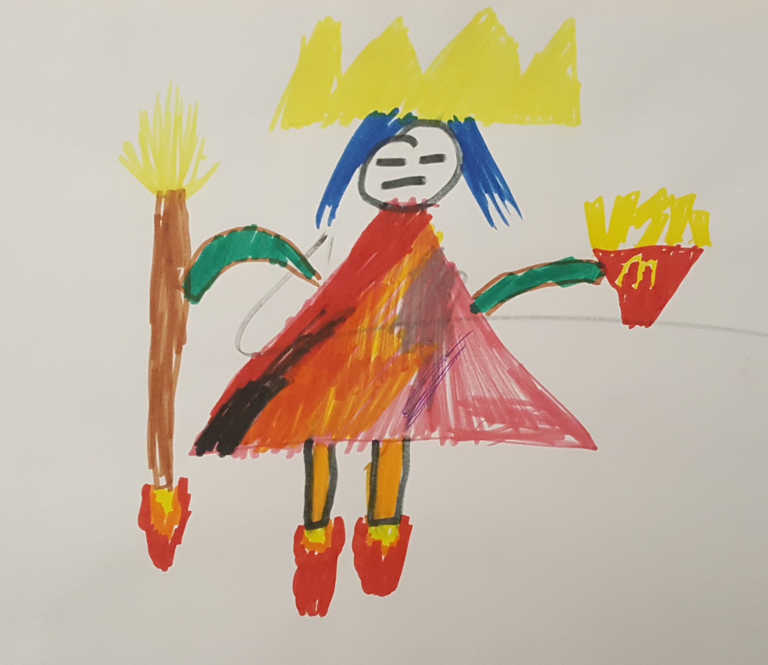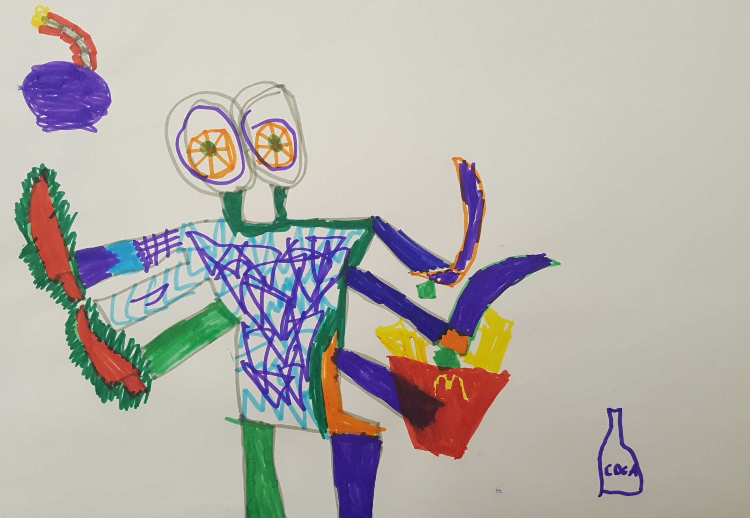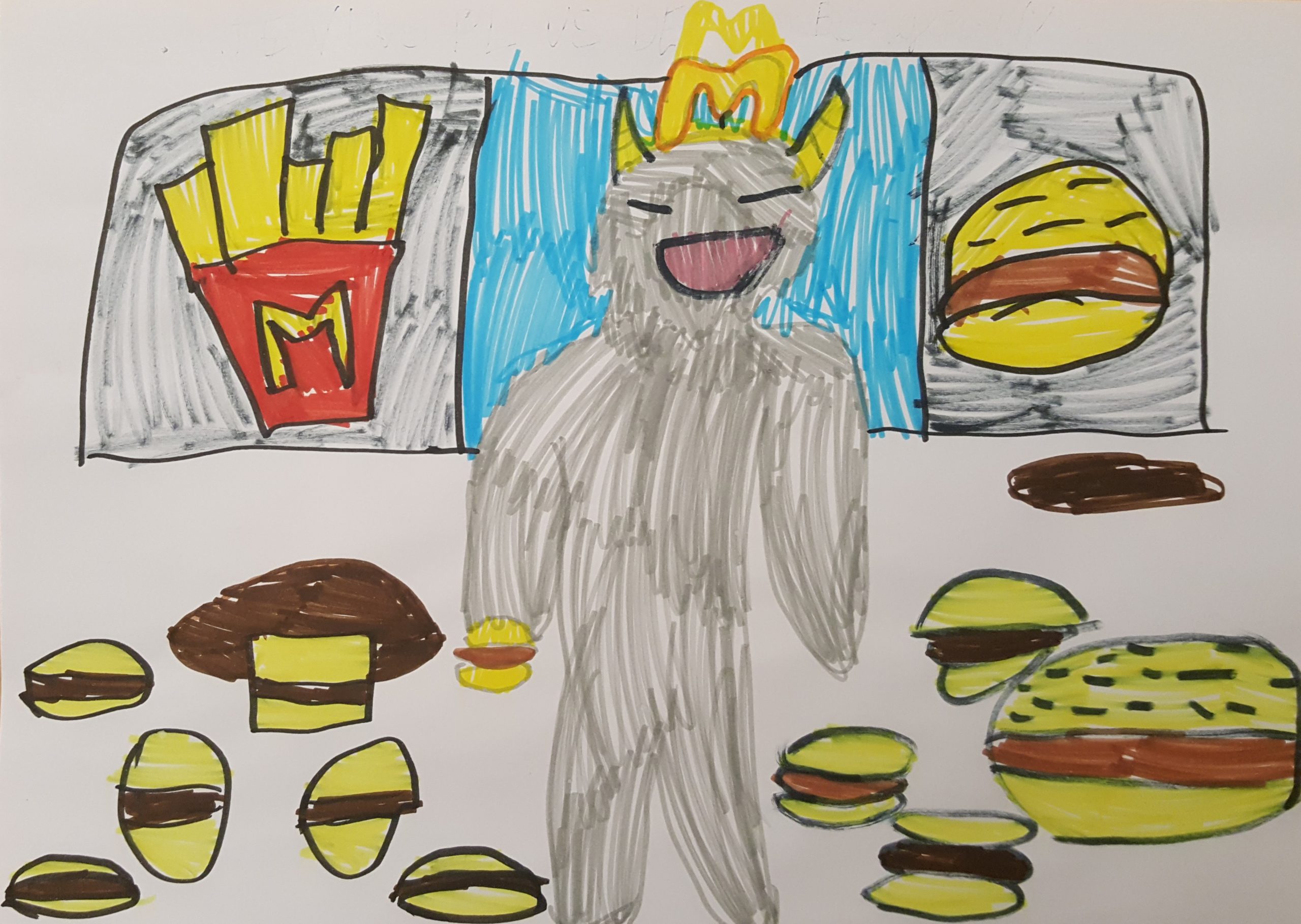 il y a un monstre qui veut manger les frites du Mc Donald.