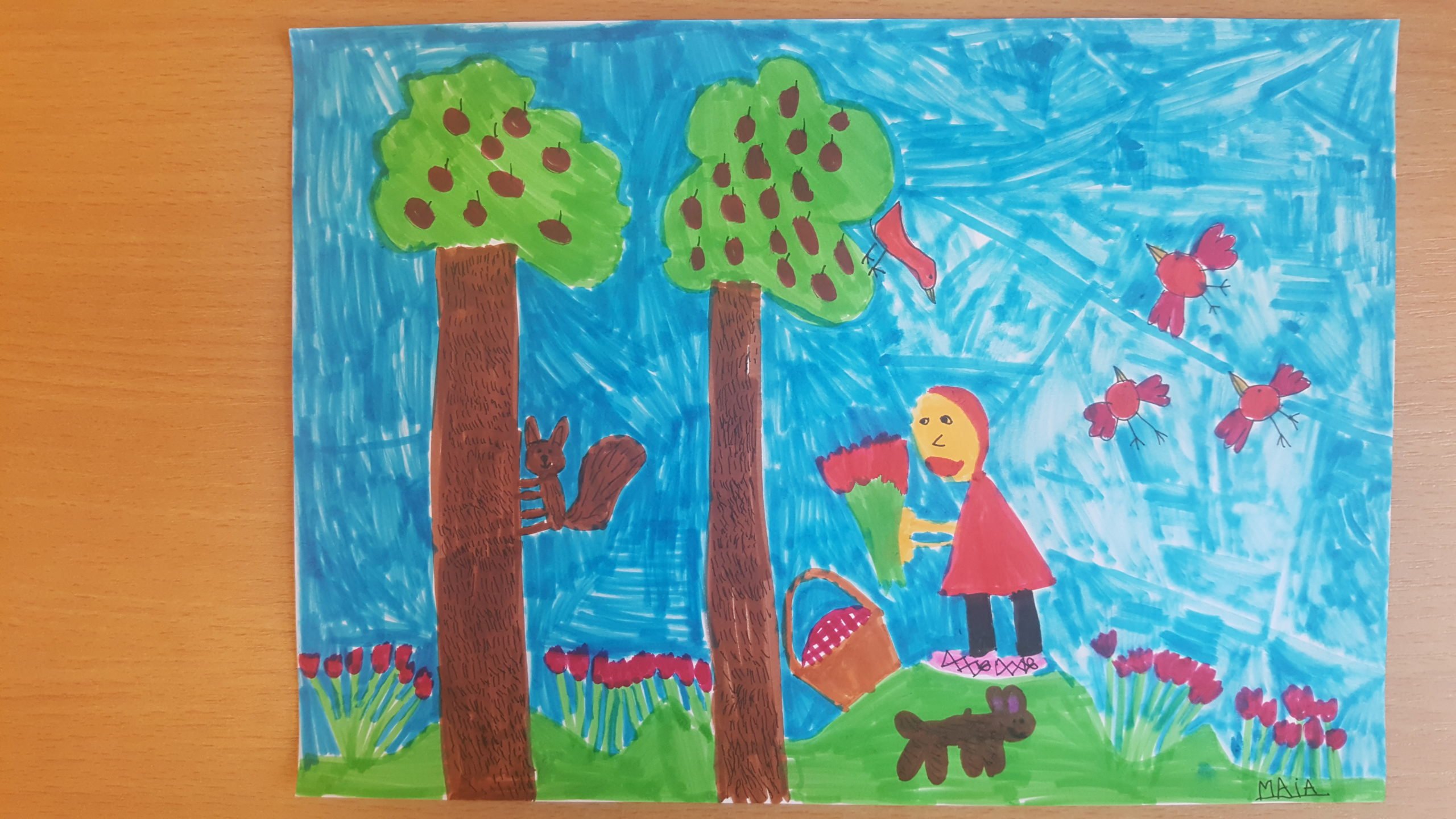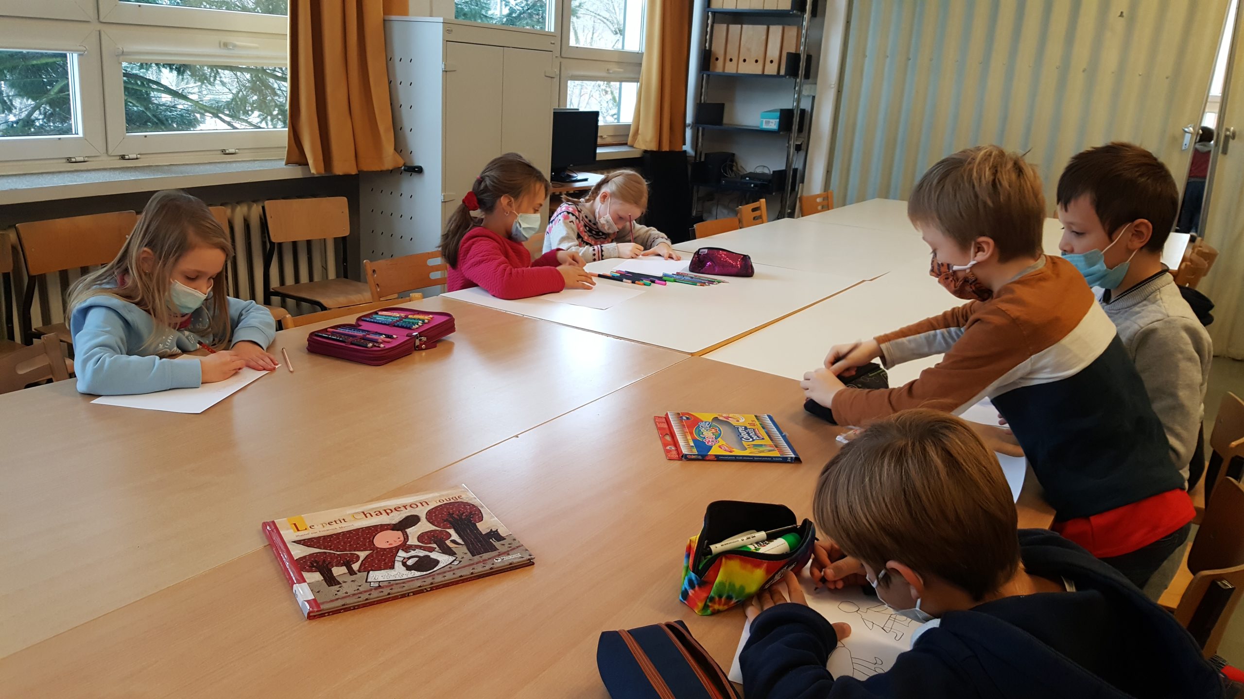 Uczniowie z klasy CP wymyślili i dorysowali zakończenie albumu „Grand-Mère Loup y es-tu ?” autorstwa Kena Browna, natomiast klasy CE1 A i CE1 B uczestniczyły we wspólnym czytaniu „Czerwonego Kapturka” edycji z ilustracjami Frédéricka Mansota, a na koniec sami wykonali rysunki do tej bajki.