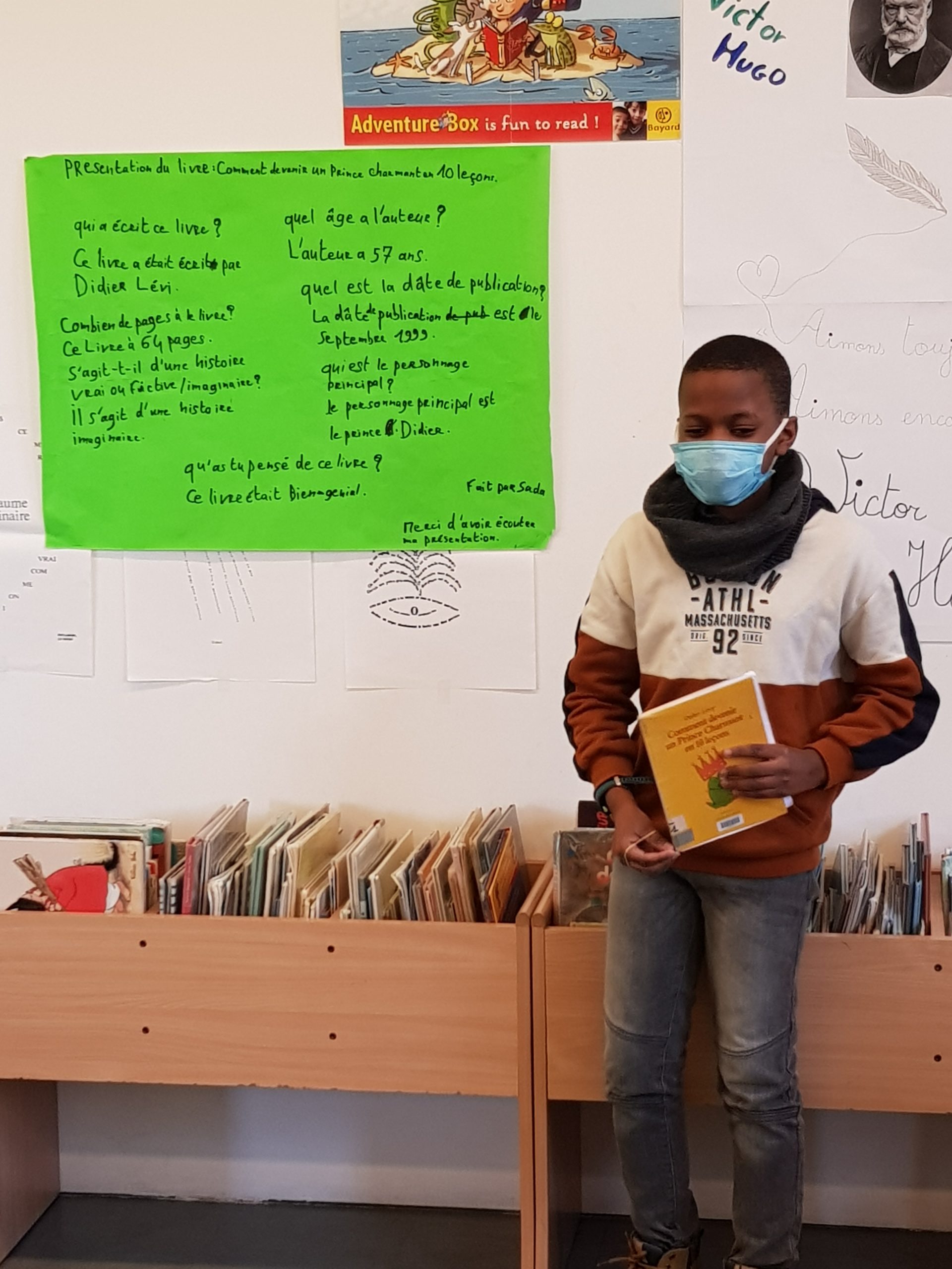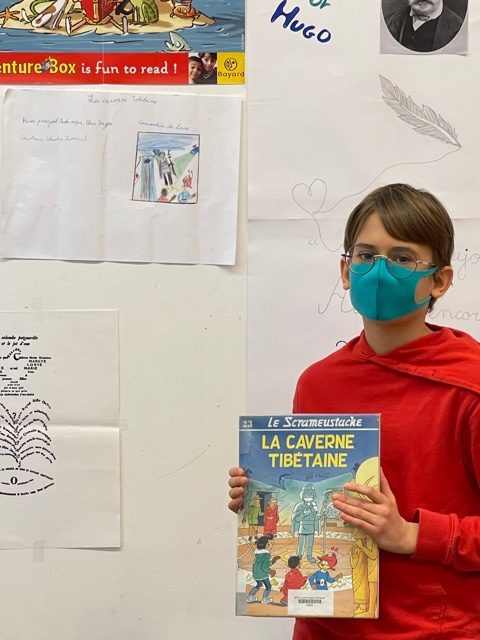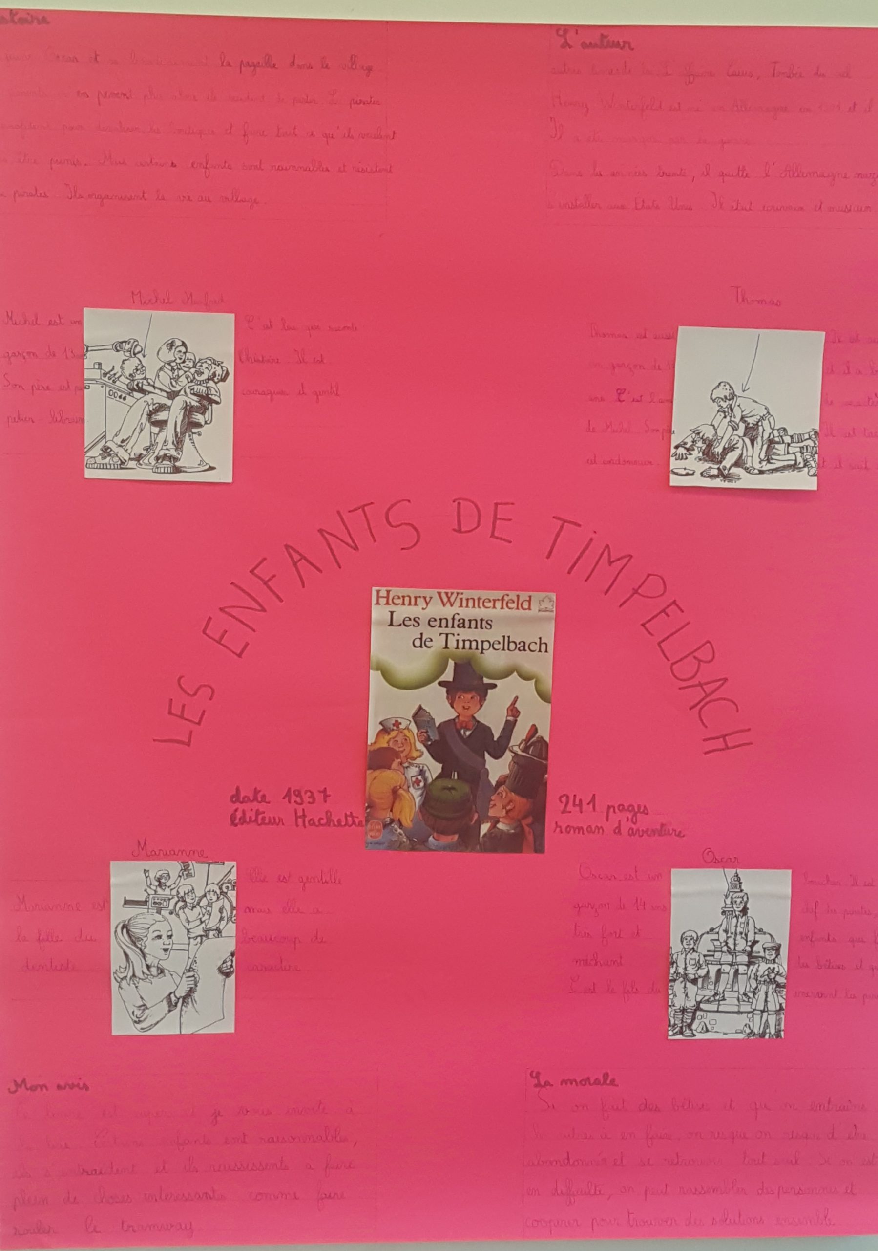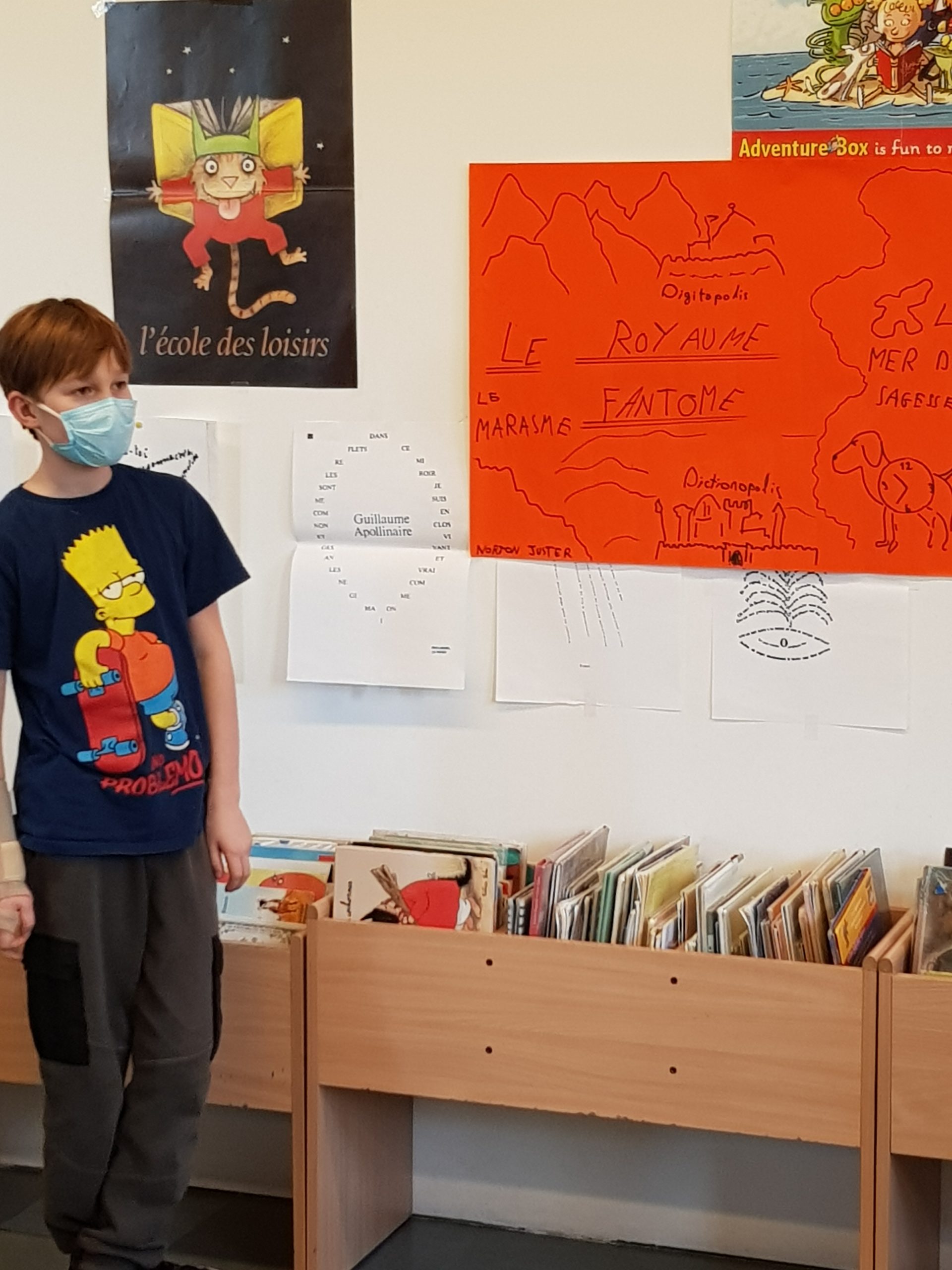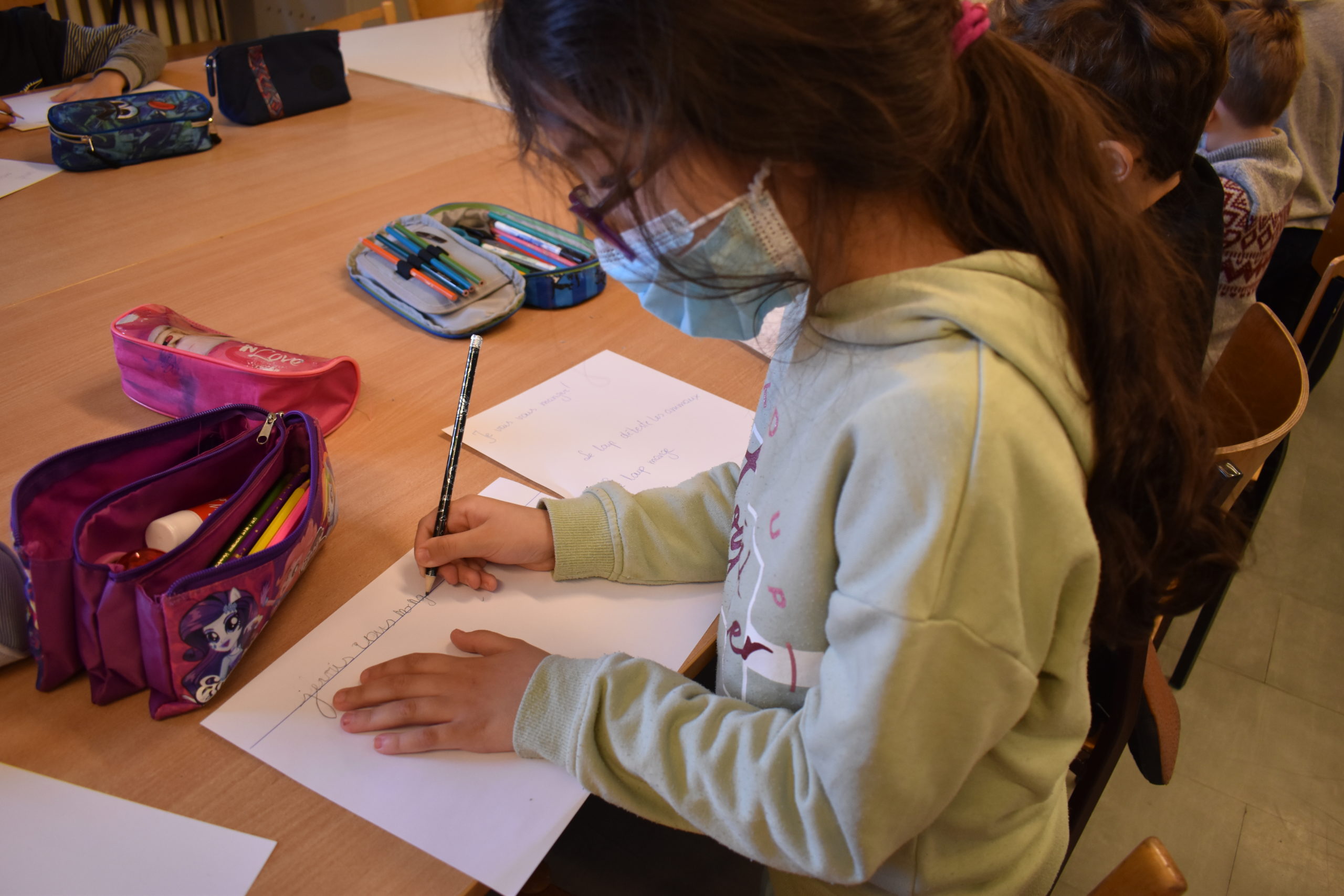 Natomiast uczniowie klas CM2 B i CM2 C wykonali plakaty swoich ulubionych książek i zaprezentowali je kolegom z klasy. Ponadto uczniowie klasy CM2 C także brali udział w warsztatach pisania wierszy i kaligramów.