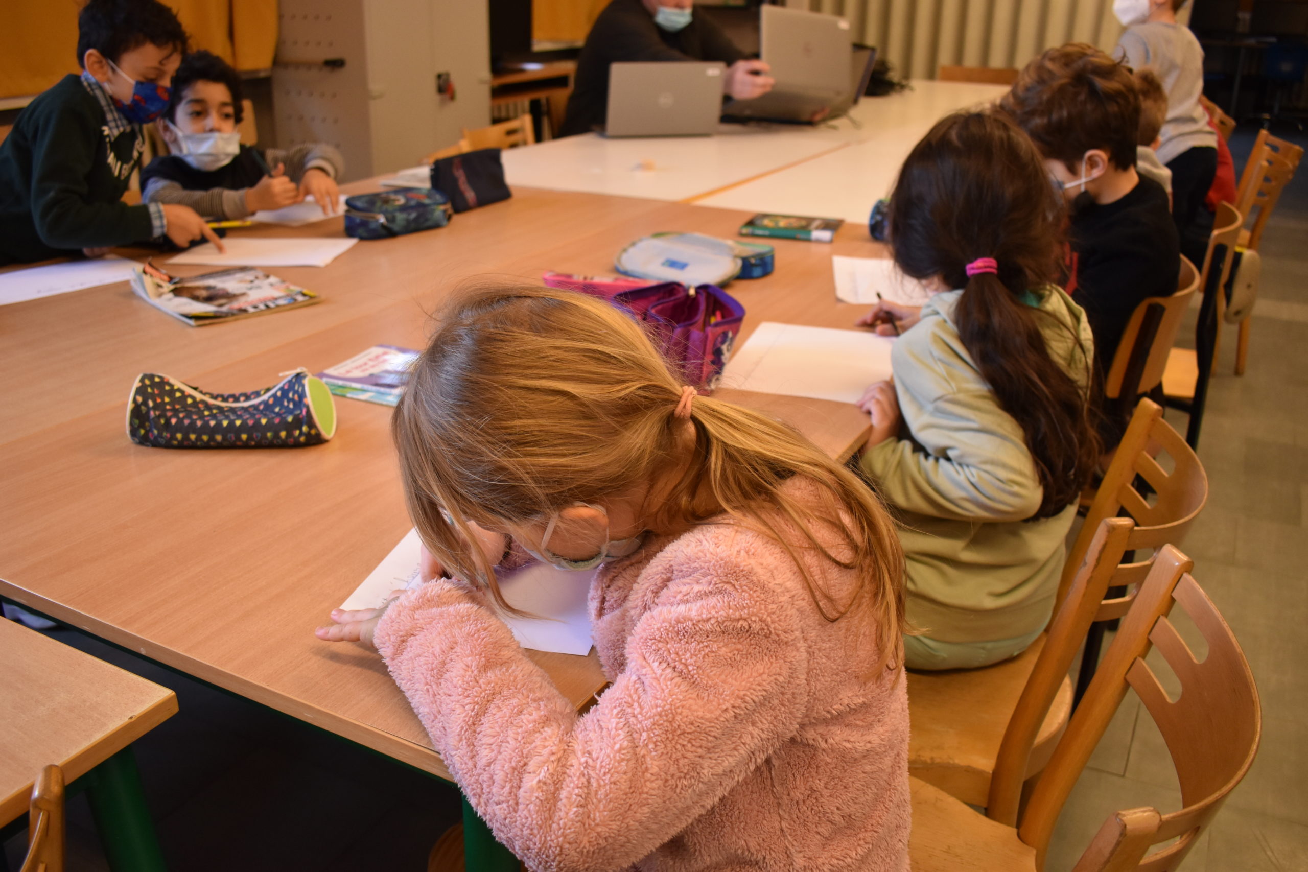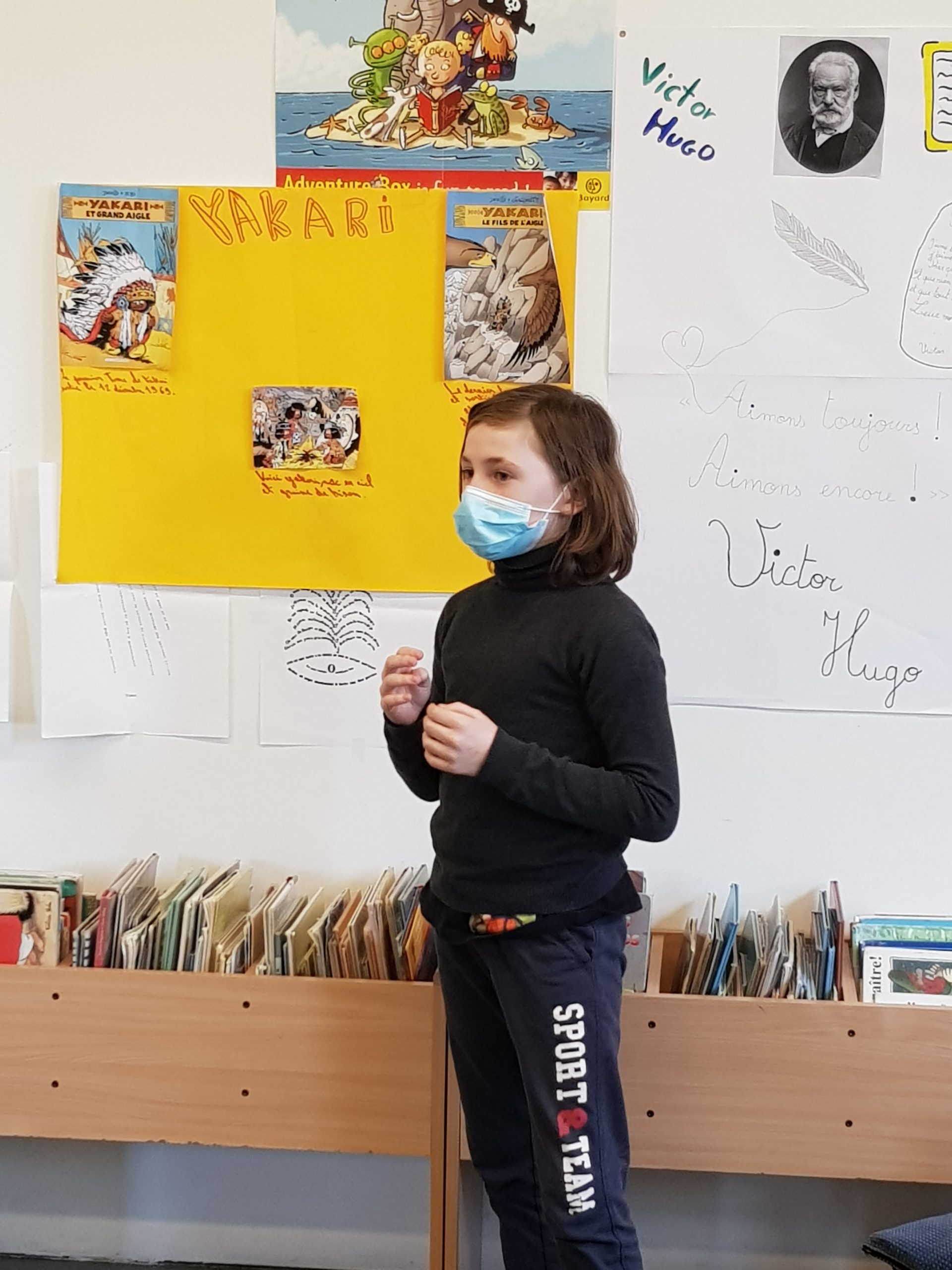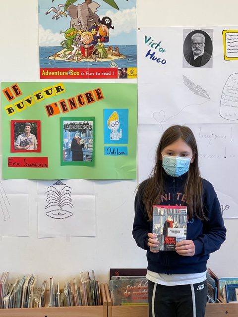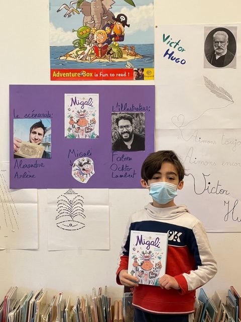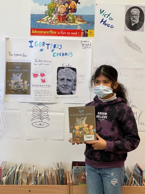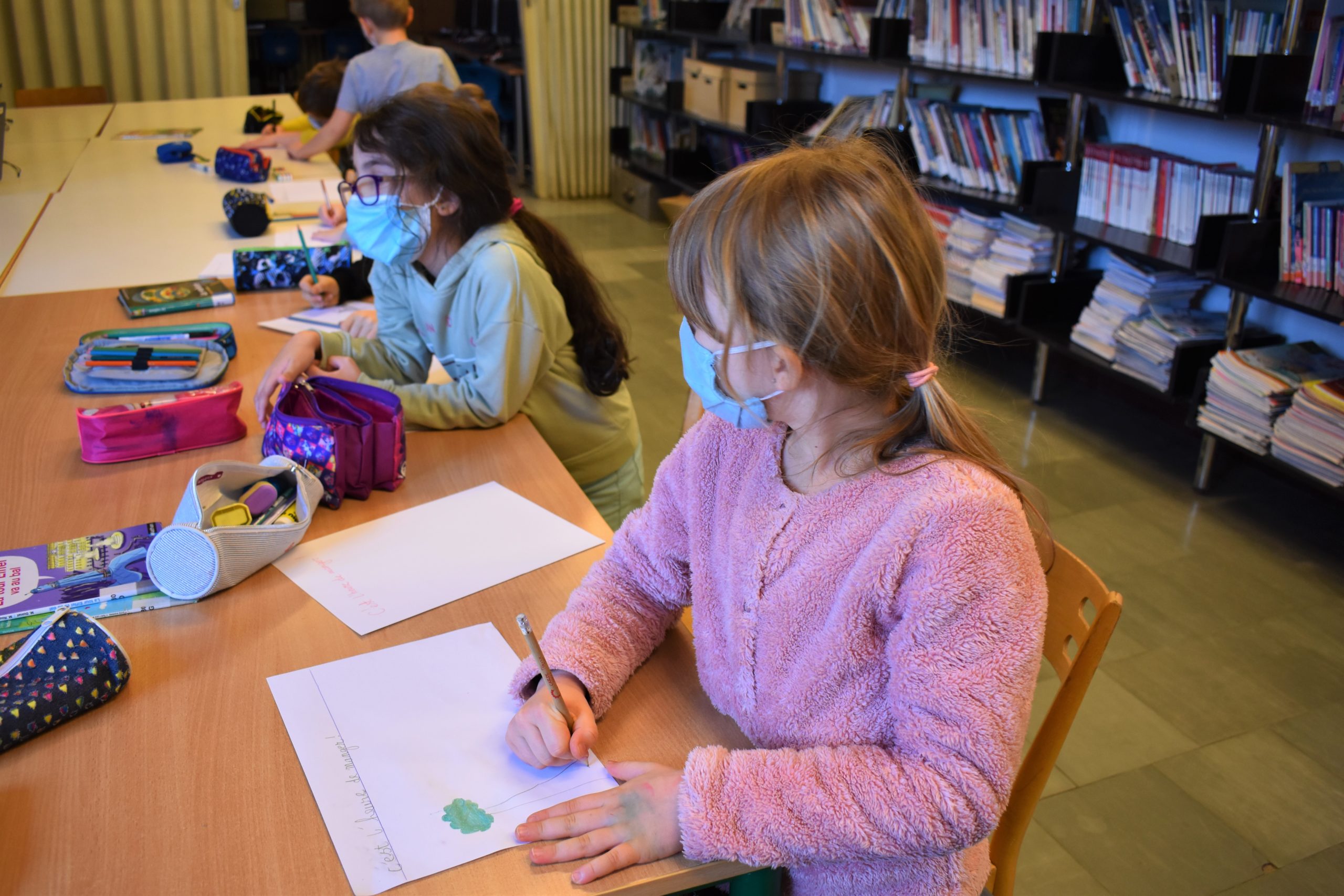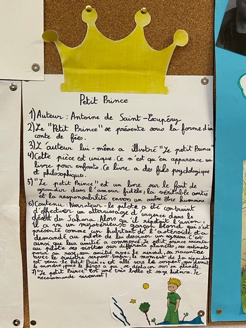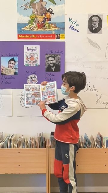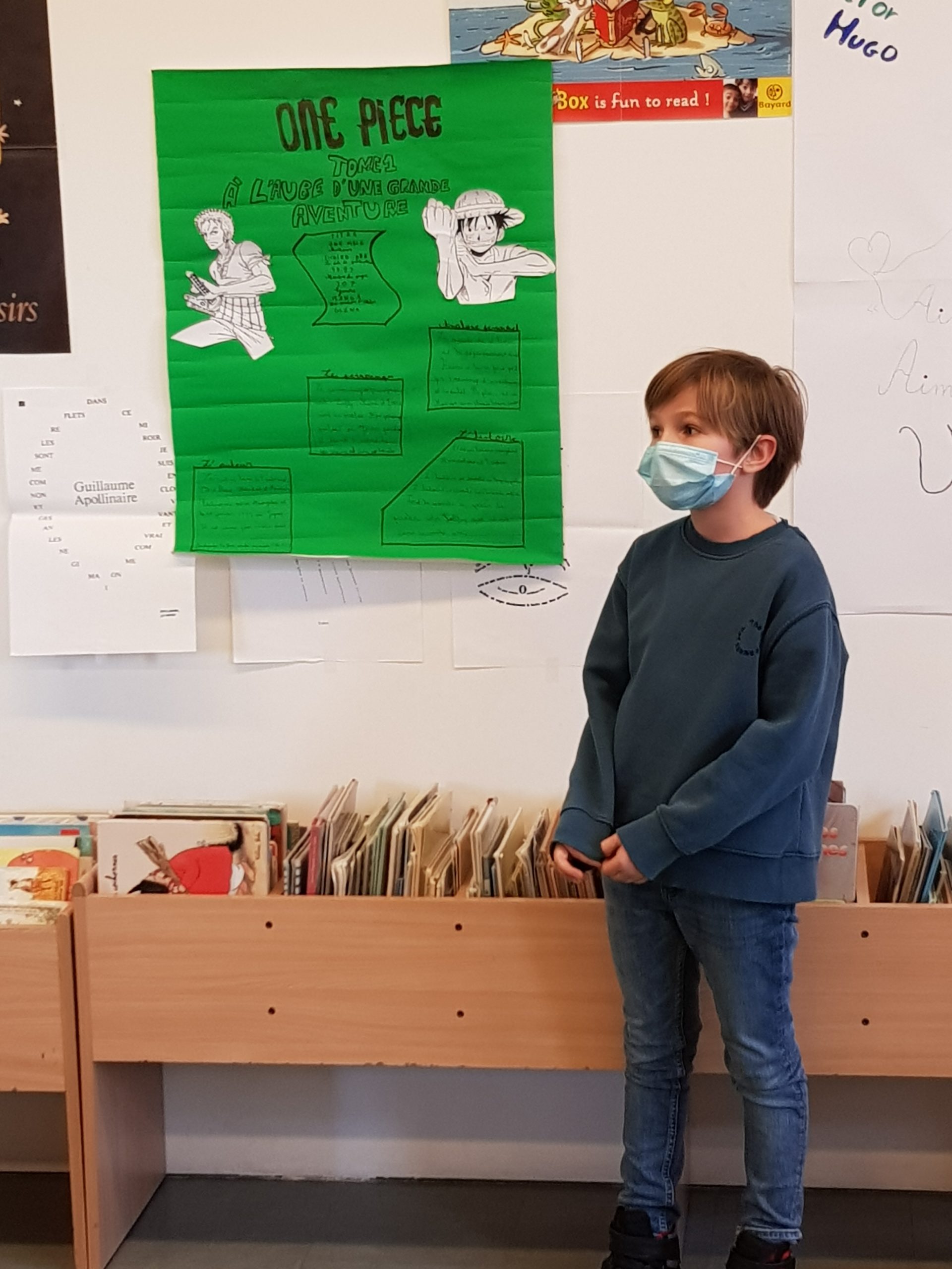 Natomiast uczniowie klas CM2 B i CM2 C wykonali plakaty swoich ulubionych książek i zaprezentowali je kolegom z klasy. Ponadto uczniowie klasy CM2 C także brali udział w warsztatach pisania wierszy i kaligramów.