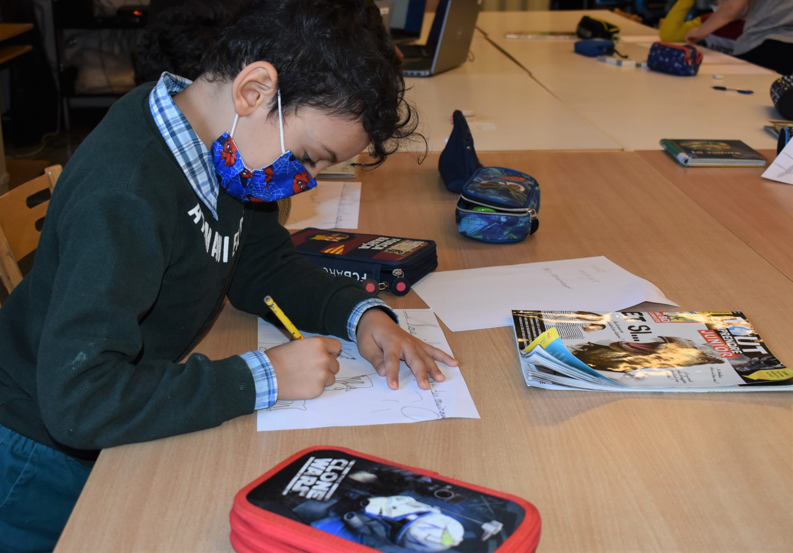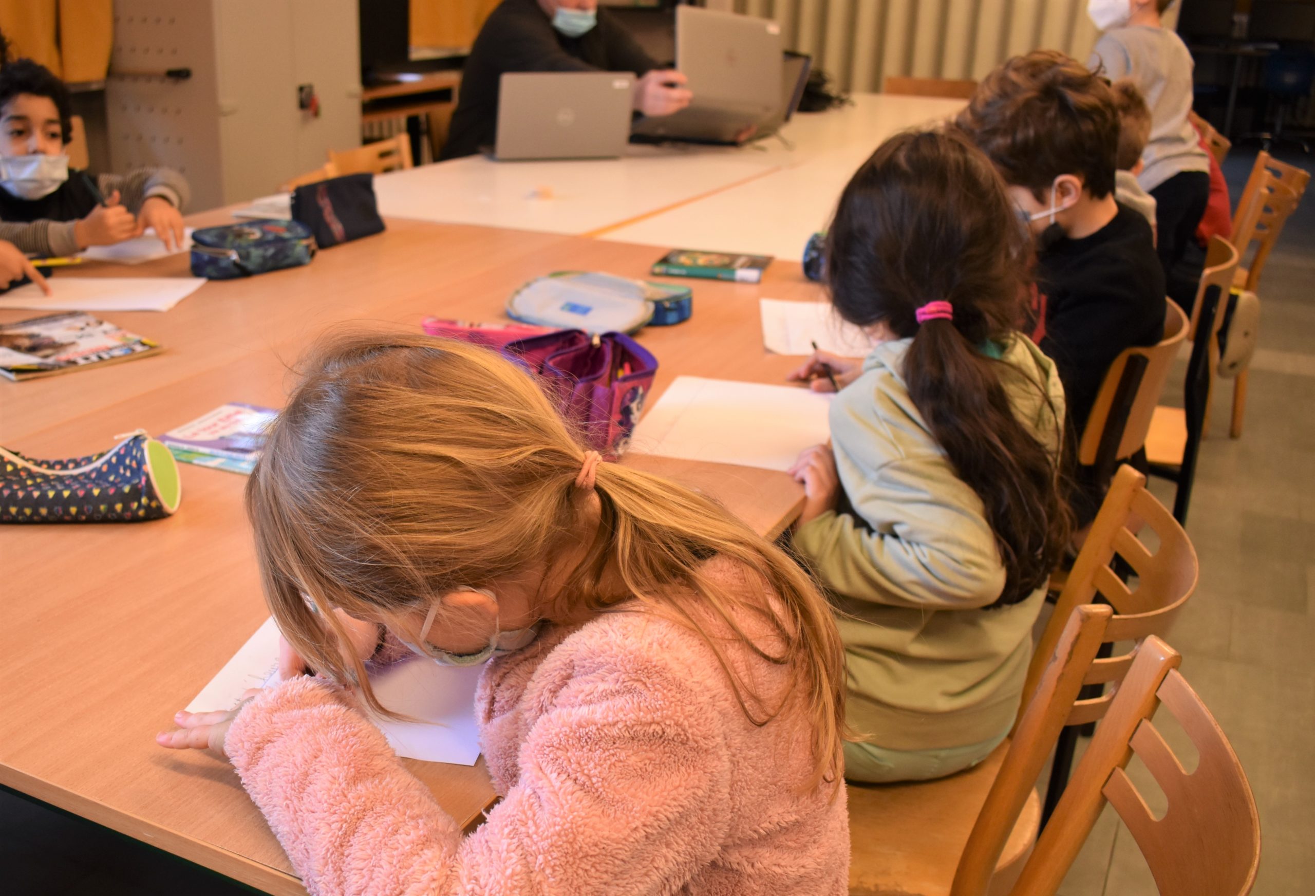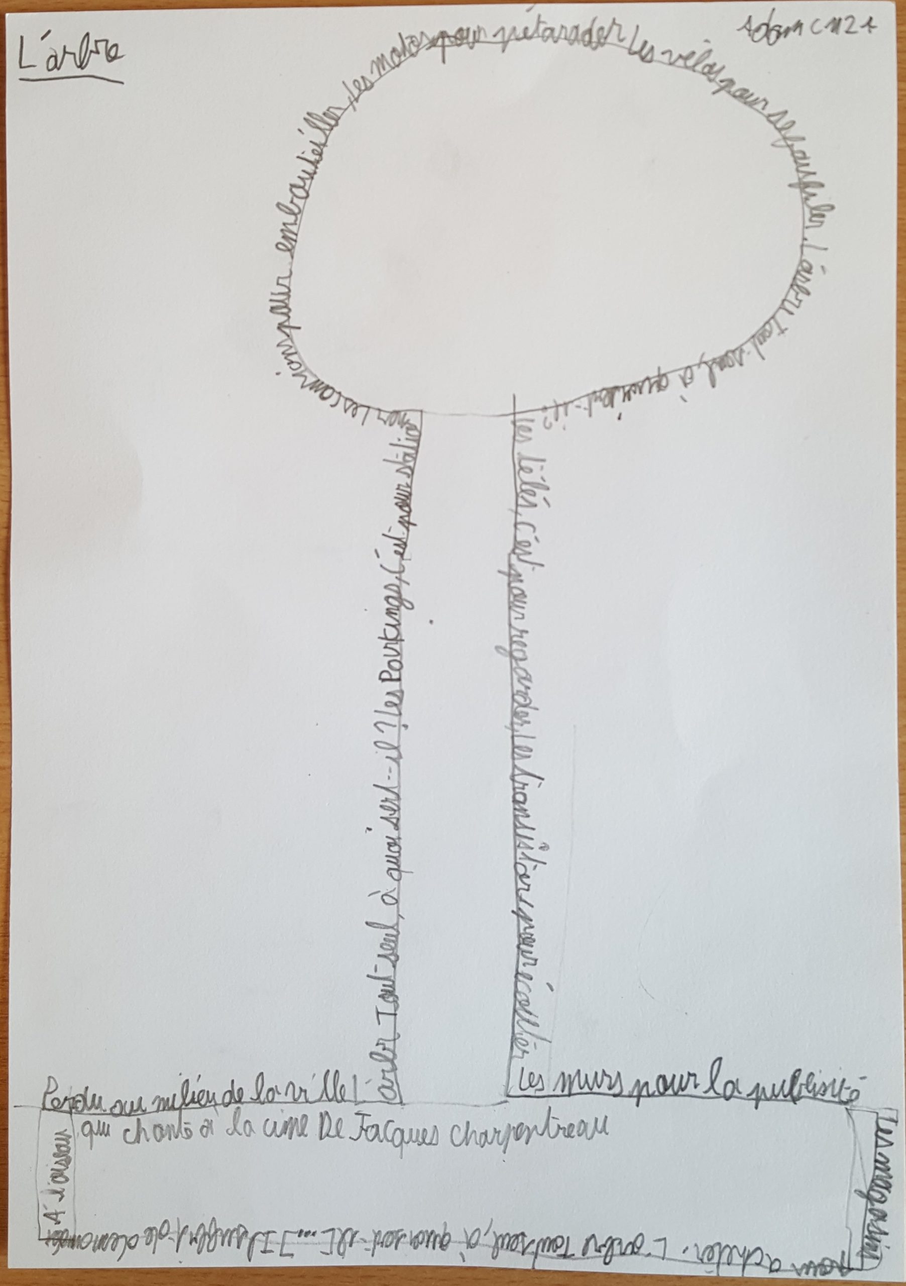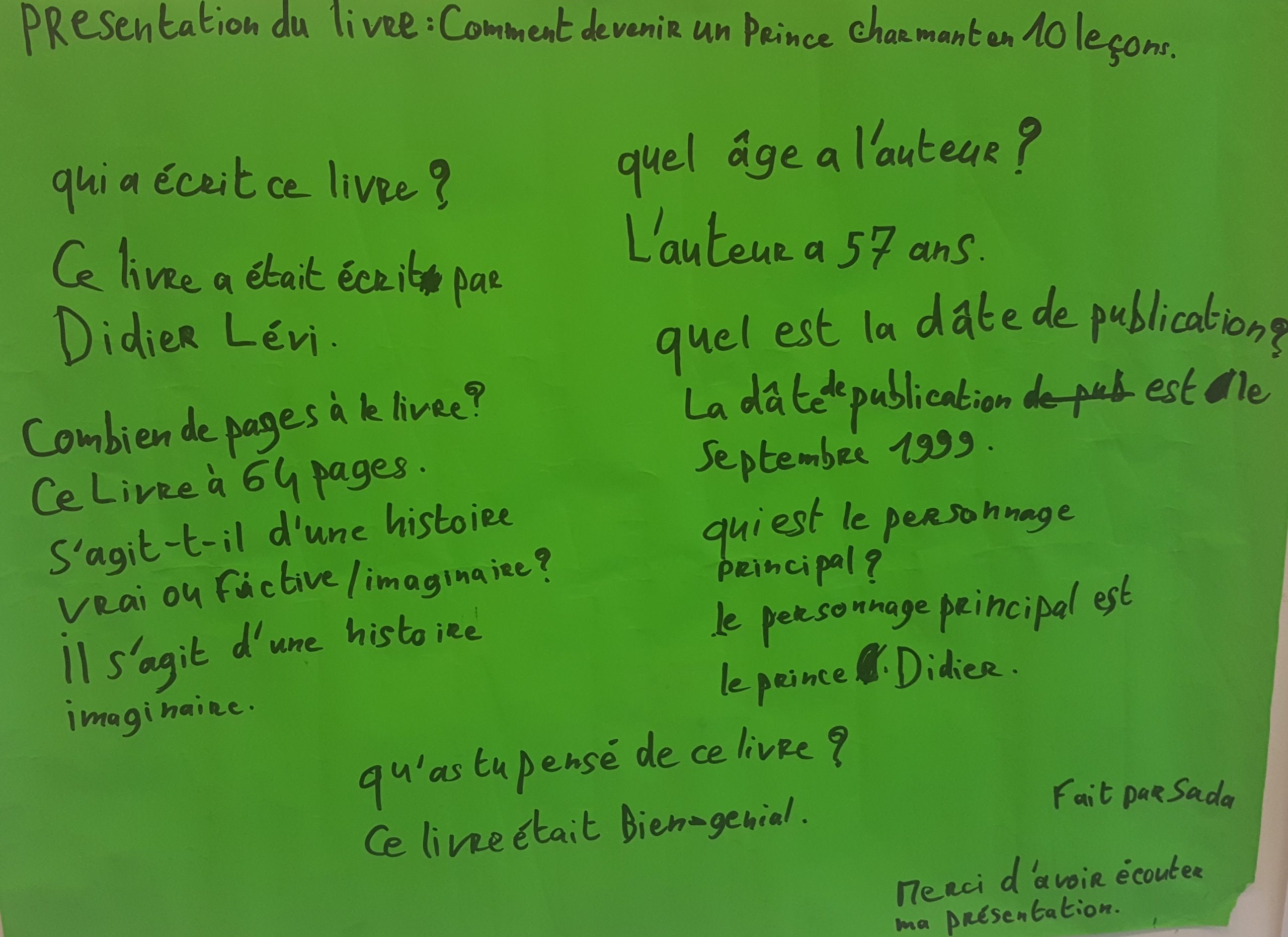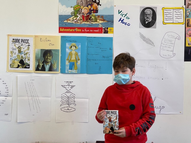 Natomiast uczniowie klas CM2 B i CM2 C wykonali plakaty swoich ulubionych książek i zaprezentowali je kolegom z klasy. Ponadto uczniowie klasy CM2 C także brali udział w warsztatach pisania wierszy i kaligramów.