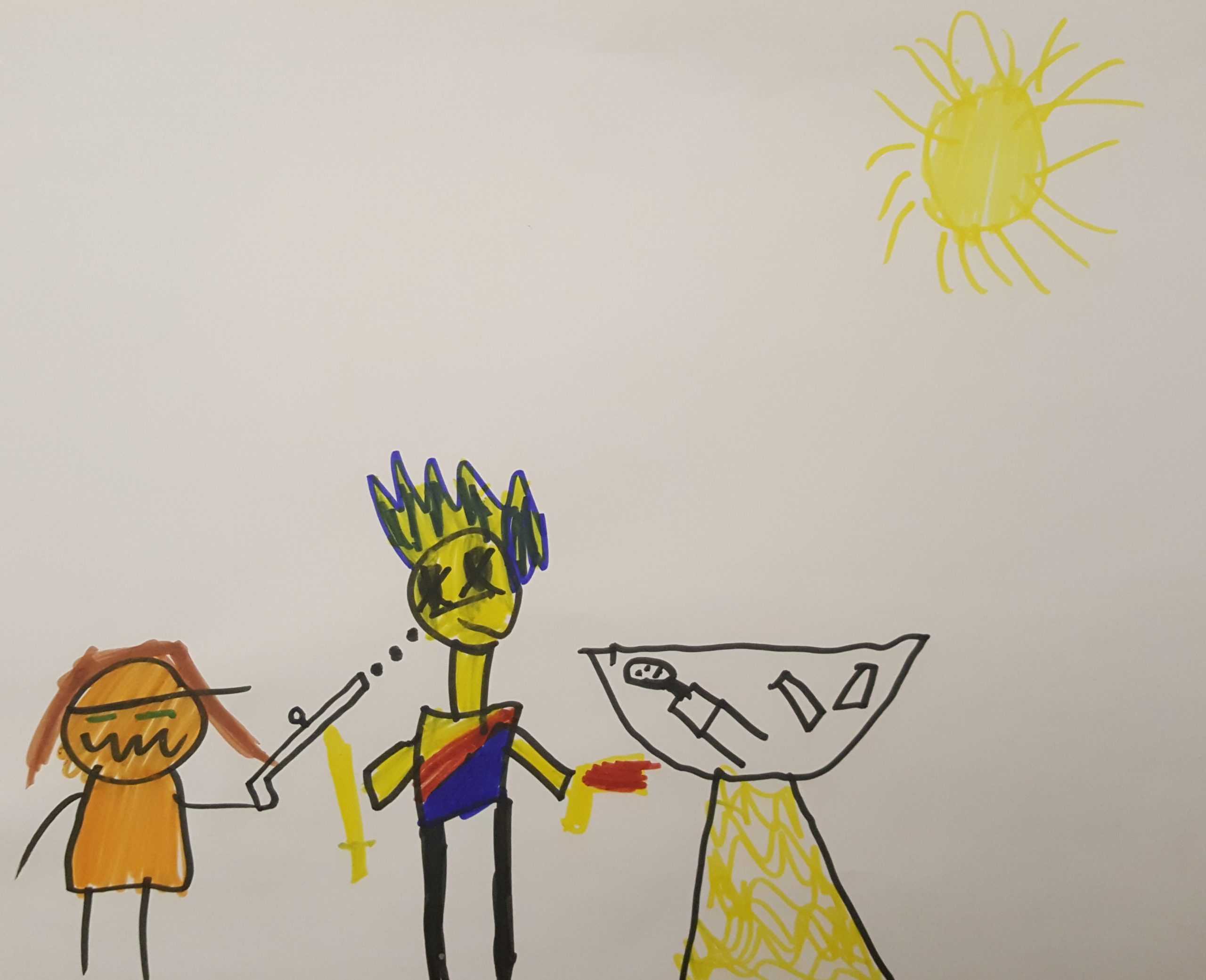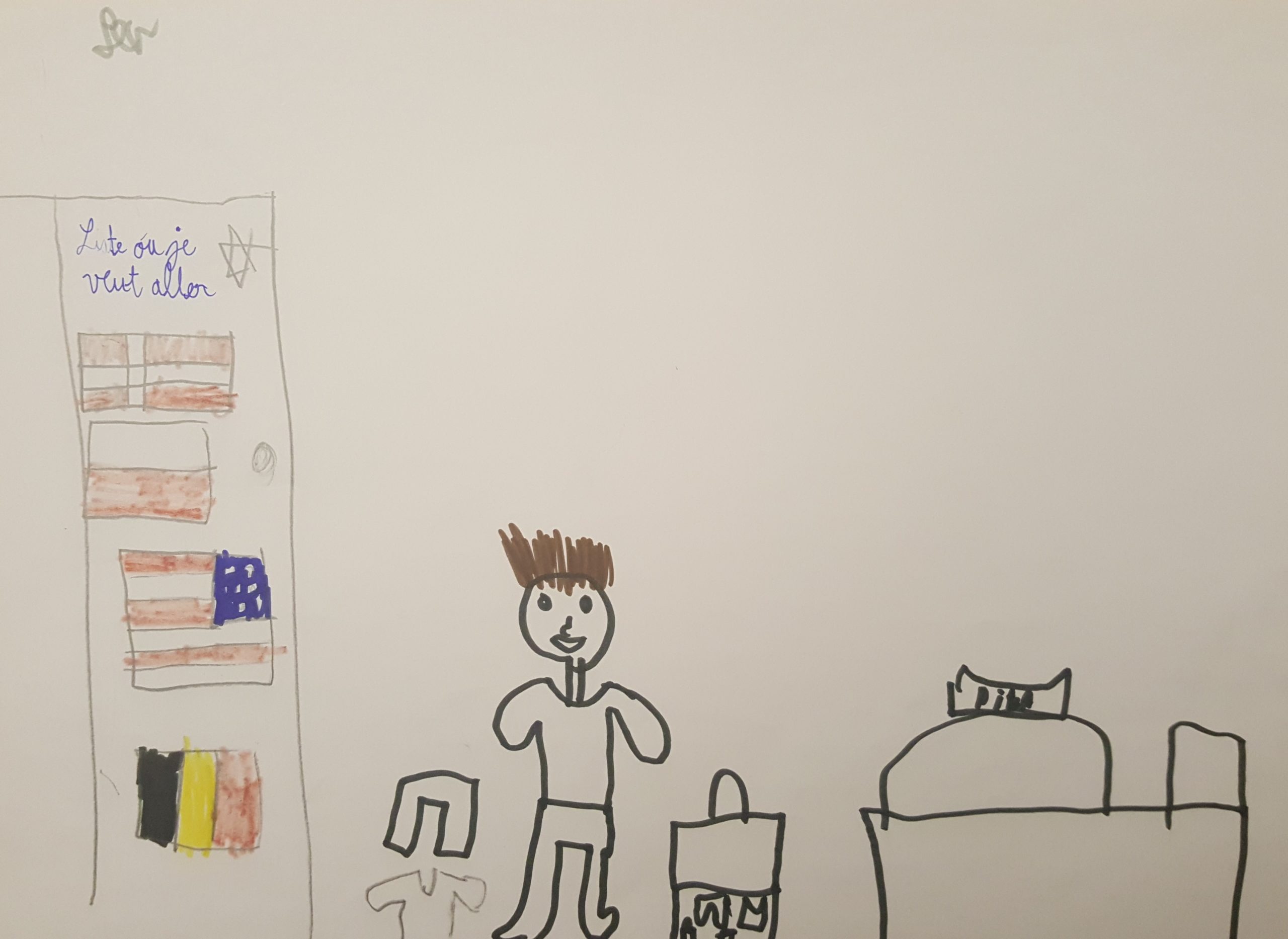 L’enfant commence à sauter, danser et chanter. La maman dit : « on part demain en voyage. Fais tes bagages et rappelle-toi de prendre des jouets. Ah pardon, deux jouets et moi je vais faire mes bagages ».