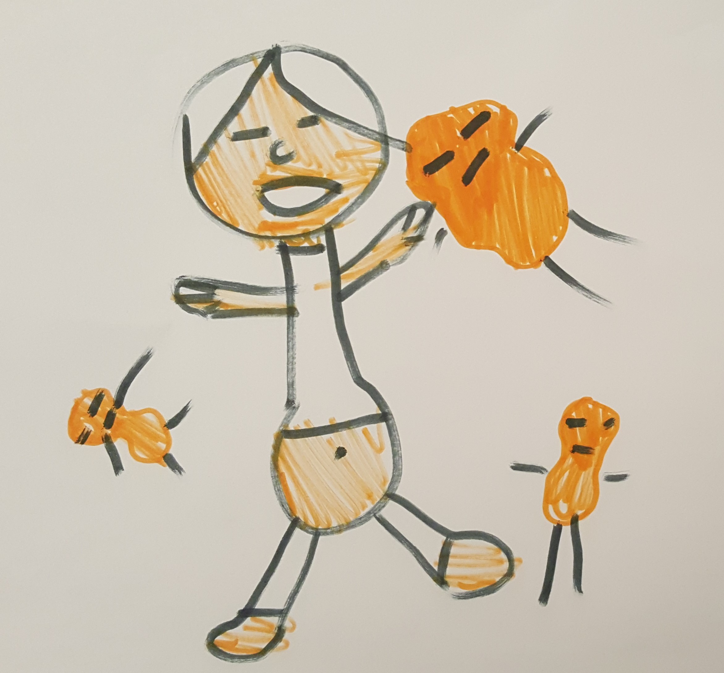 Ensuite, un cannibale cuit l’homme. Après, une fille dévore le cannibale. Mais Michael Jordan avale la fille.