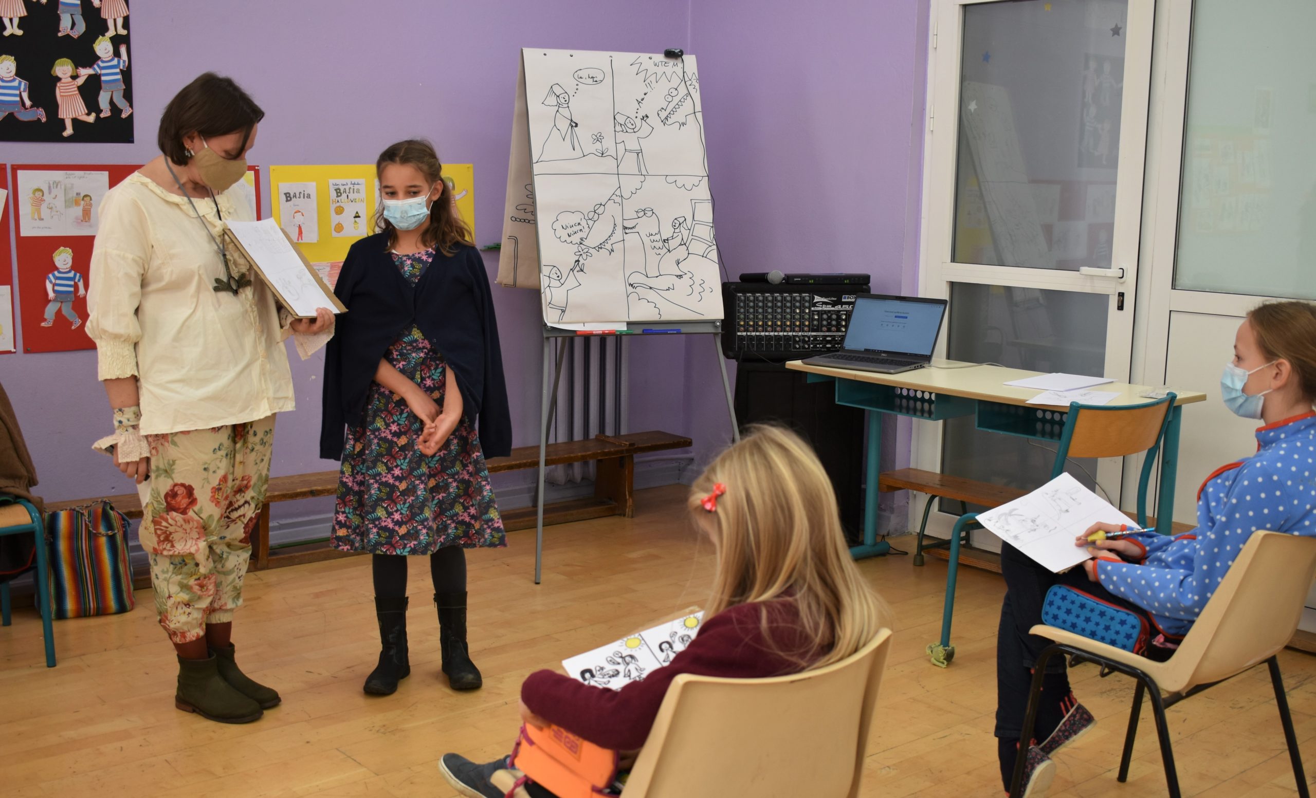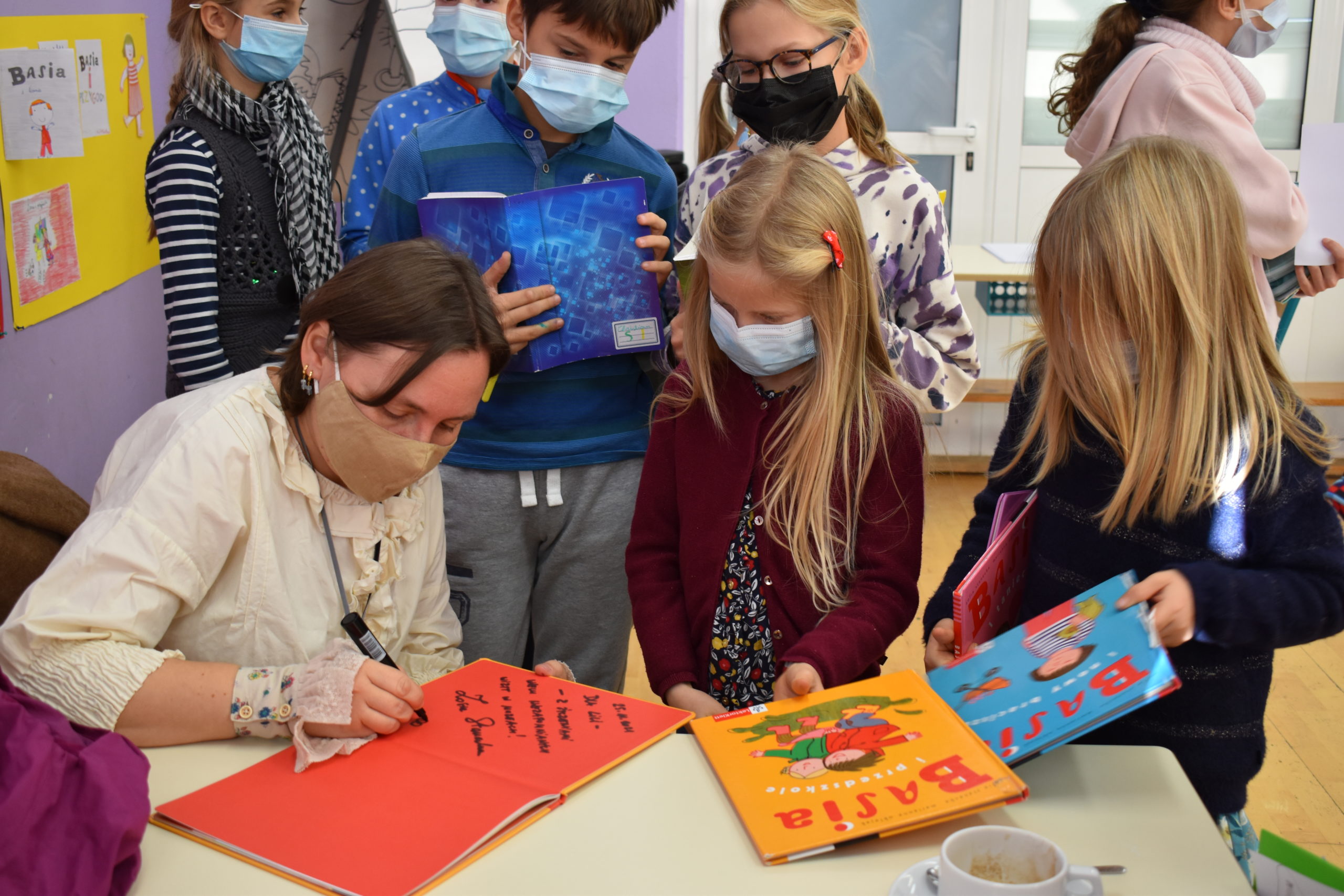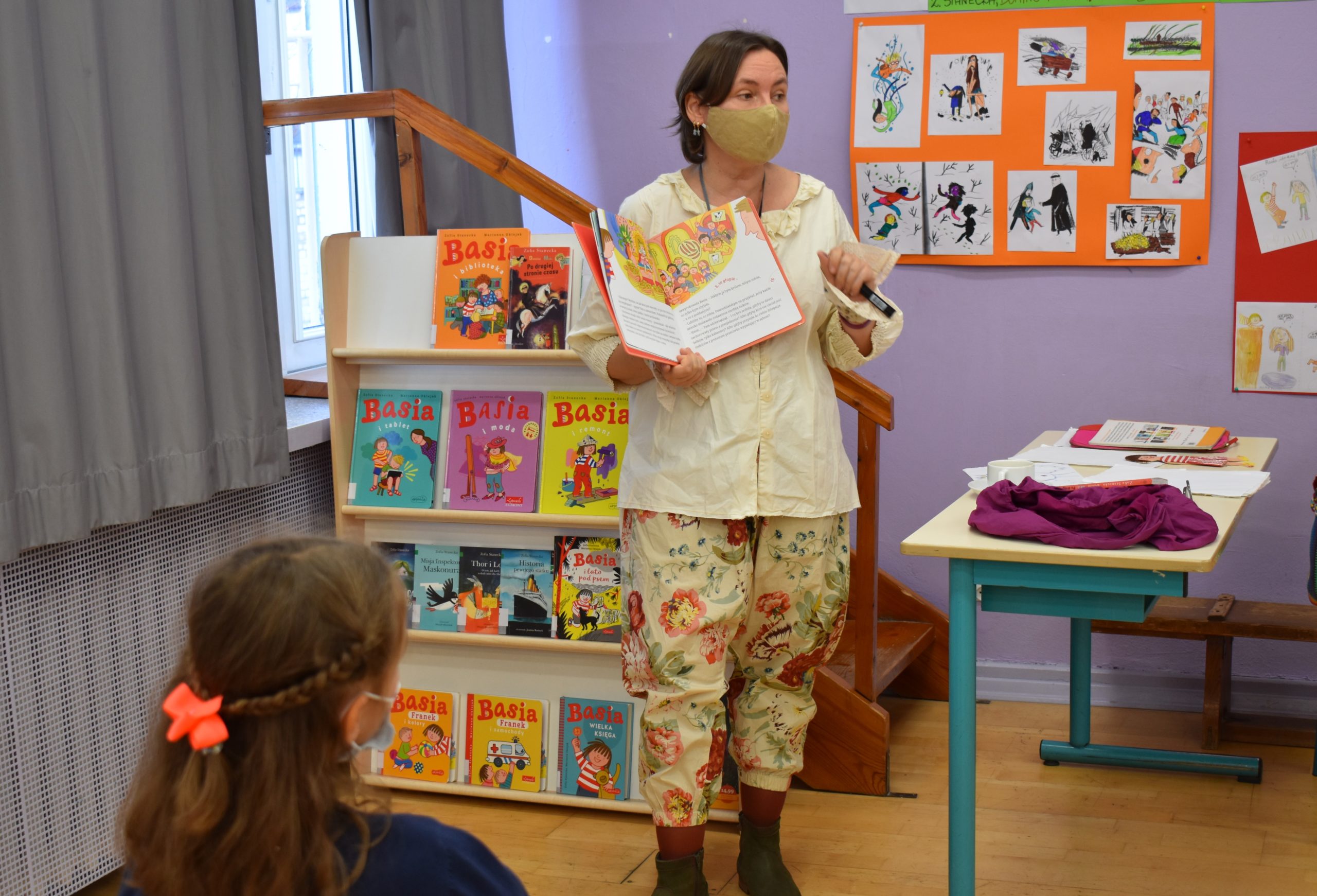 Uczniowie klas od CP do CM2, którzy zapisali się do Międzynarodowej sekcji języka polskiego, mieli okazję porozmawiać z panią Zofią Stanecką, autorką m.in. słynnej serii książek dla dzieci pt. „Basia”.