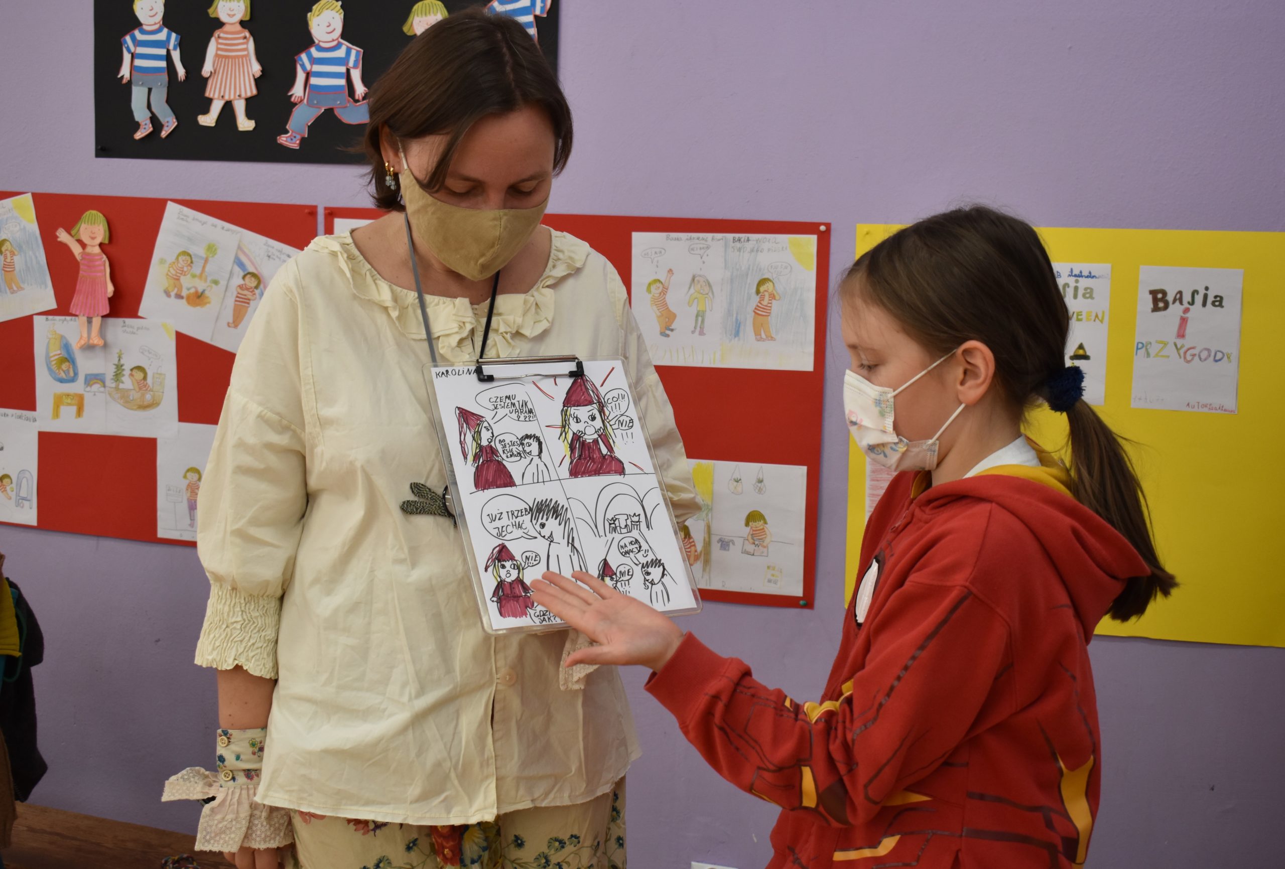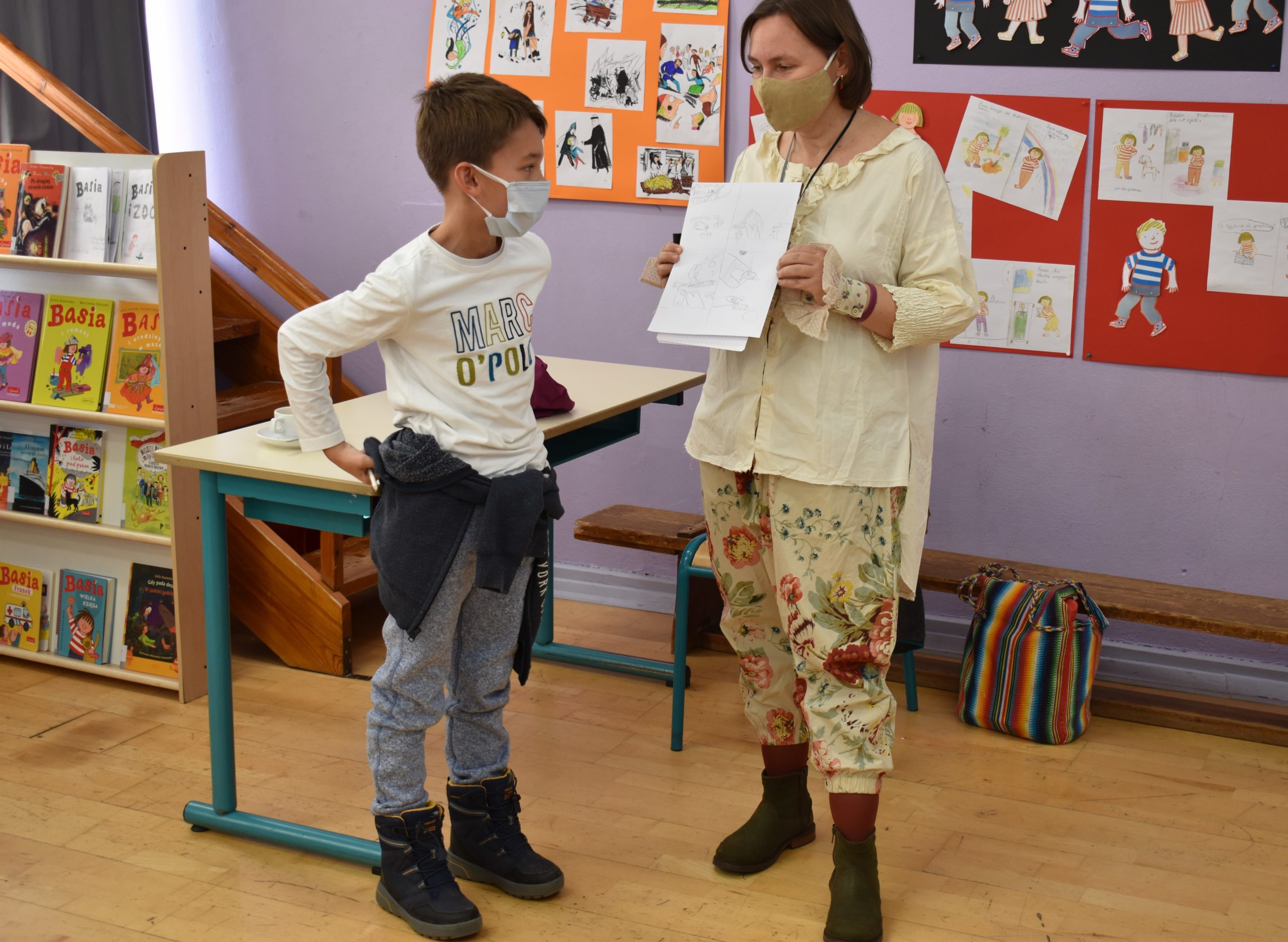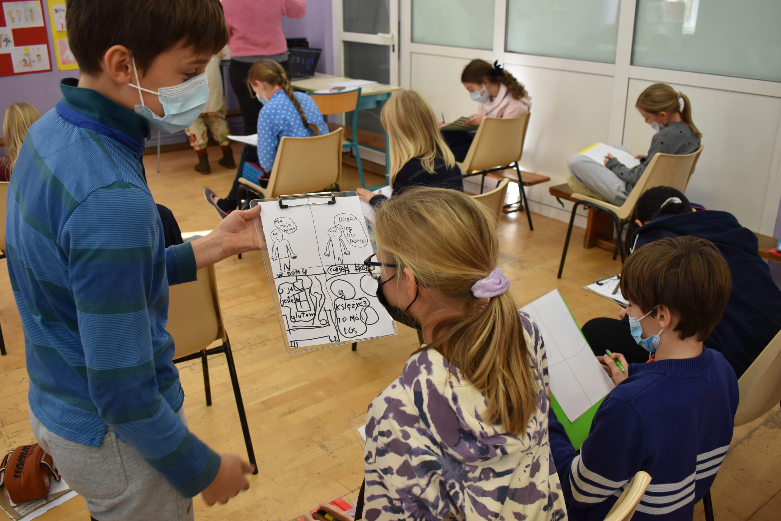 Uczniowie klas od CP do CM2, którzy zapisali się do Międzynarodowej sekcji języka polskiego, mieli okazję porozmawiać z panią Zofią Stanecką, autorką m.in. słynnej serii książek dla dzieci pt. „Basia”.
