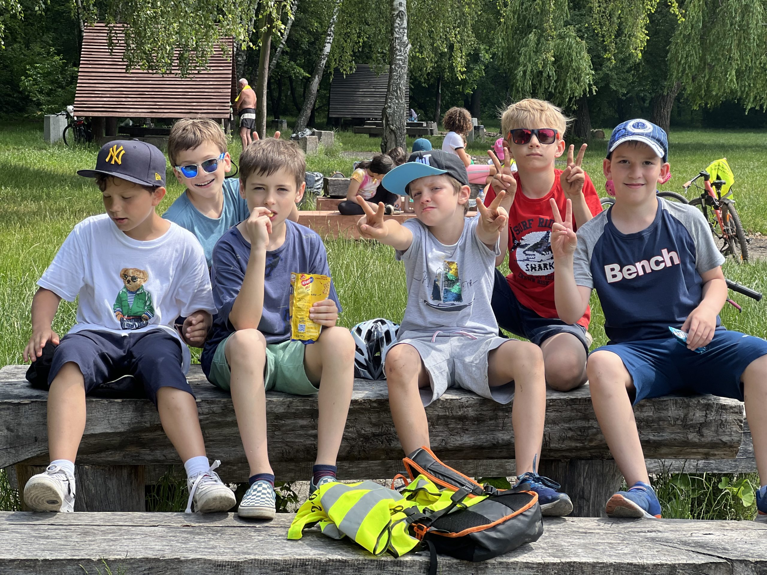 Przez całą przejażdżkę naszych młodych rowerzystów nie opuszczał hart ducha i kontynuowali jazdę nawet pod wiatr. Było warto, ponieważ na mecie czekał na nich świetny piknik na łonie natury!